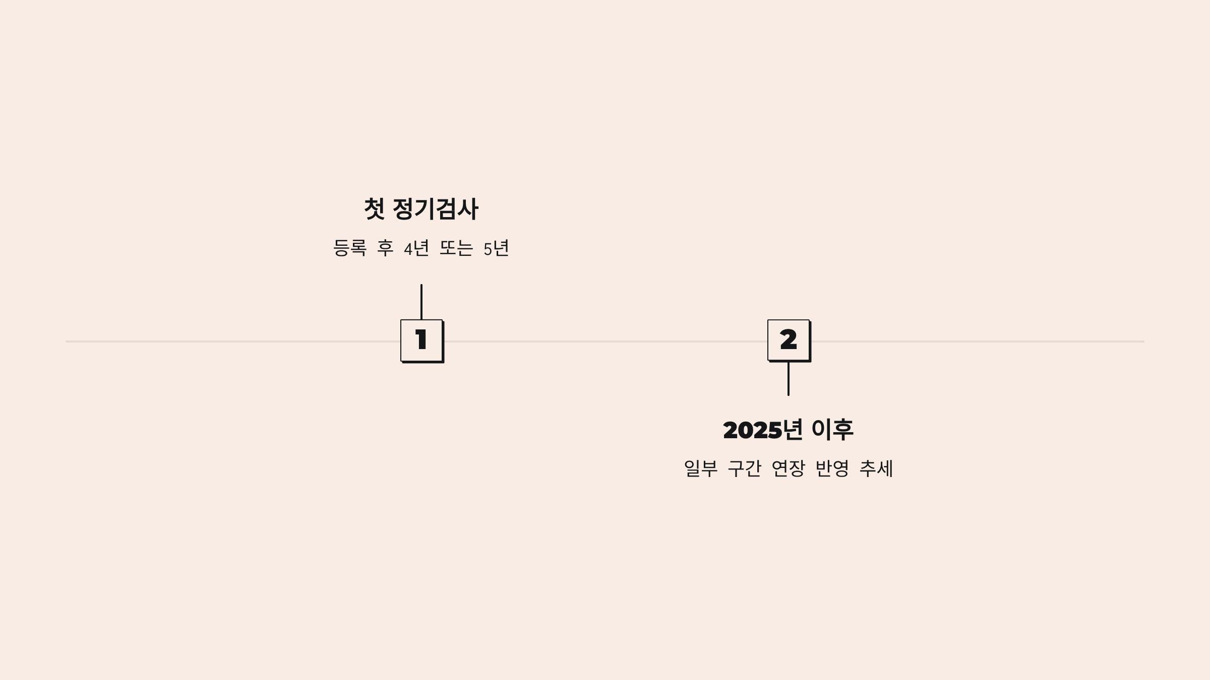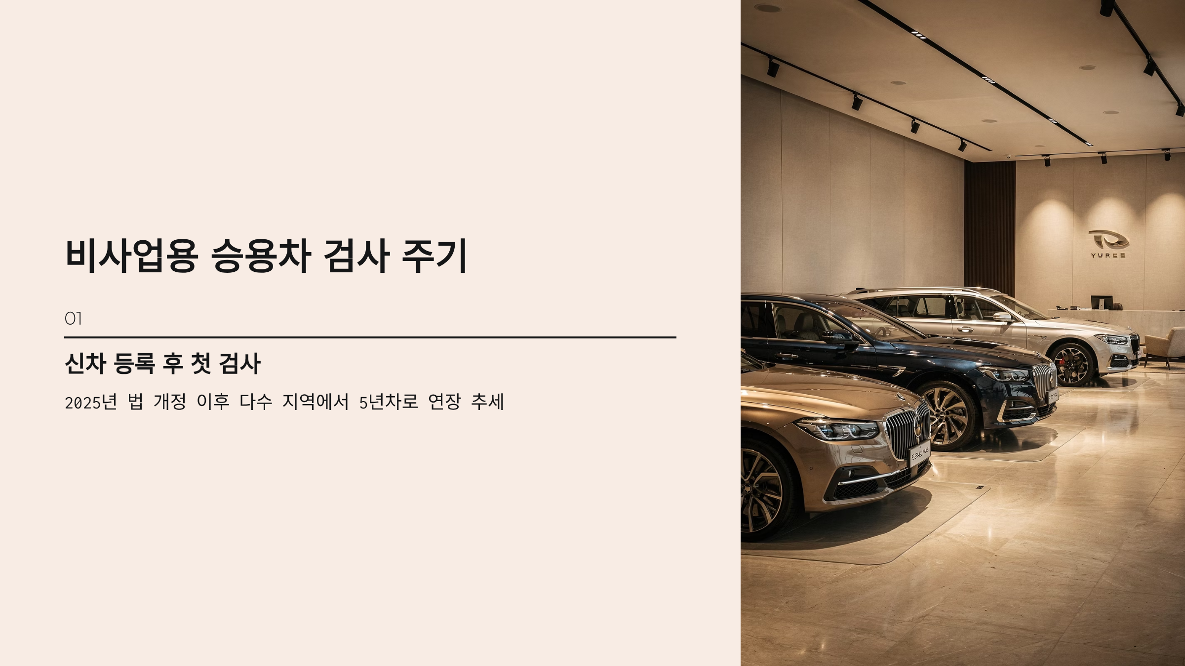 - 첫 정기검사: 등록 후 4년 또는 5년(2025년 이후 일부 구간 연장 반영 추세).