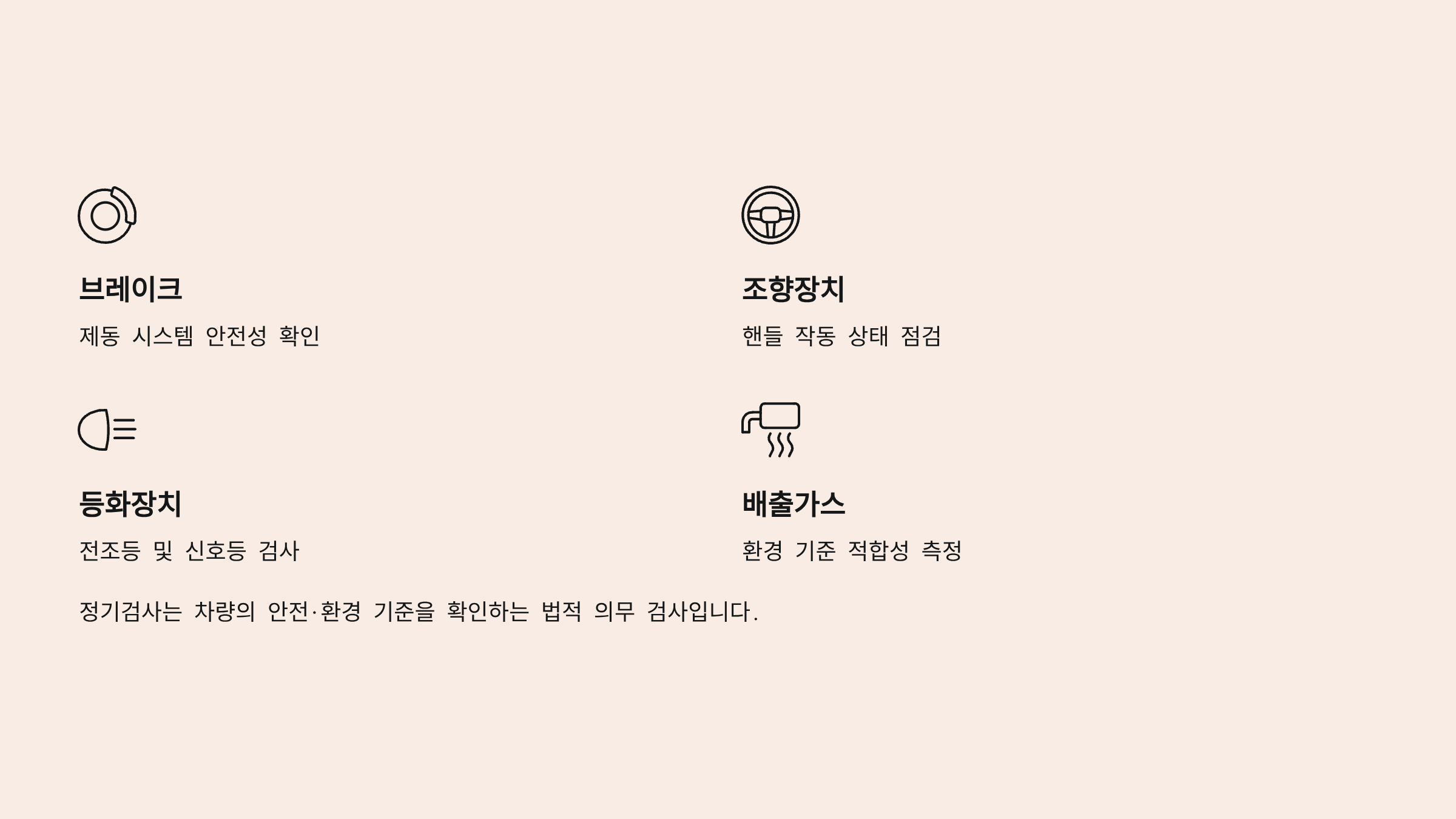 정기검사는 차량의 브레이크, 조향, 등화장치, 배출가스 등 안전·환경 기준을 확인하는 법적 의무 검사이며, 기준을 어기면 과태료가 부과됩니다.