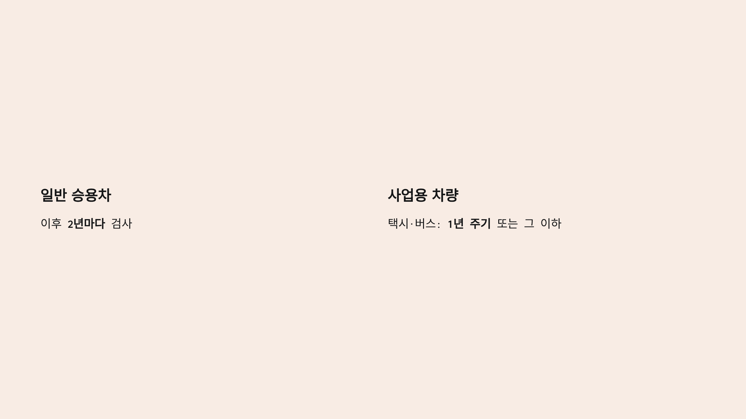 - 사업용 승용차·택시·버스: 1년 주기 또는 그 이하.