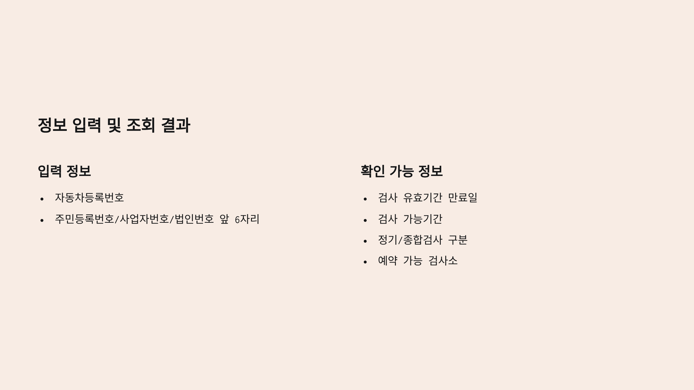 - 정기/종합검사 구분, 검사 대상 여부, 예약 가능 검사소 등.