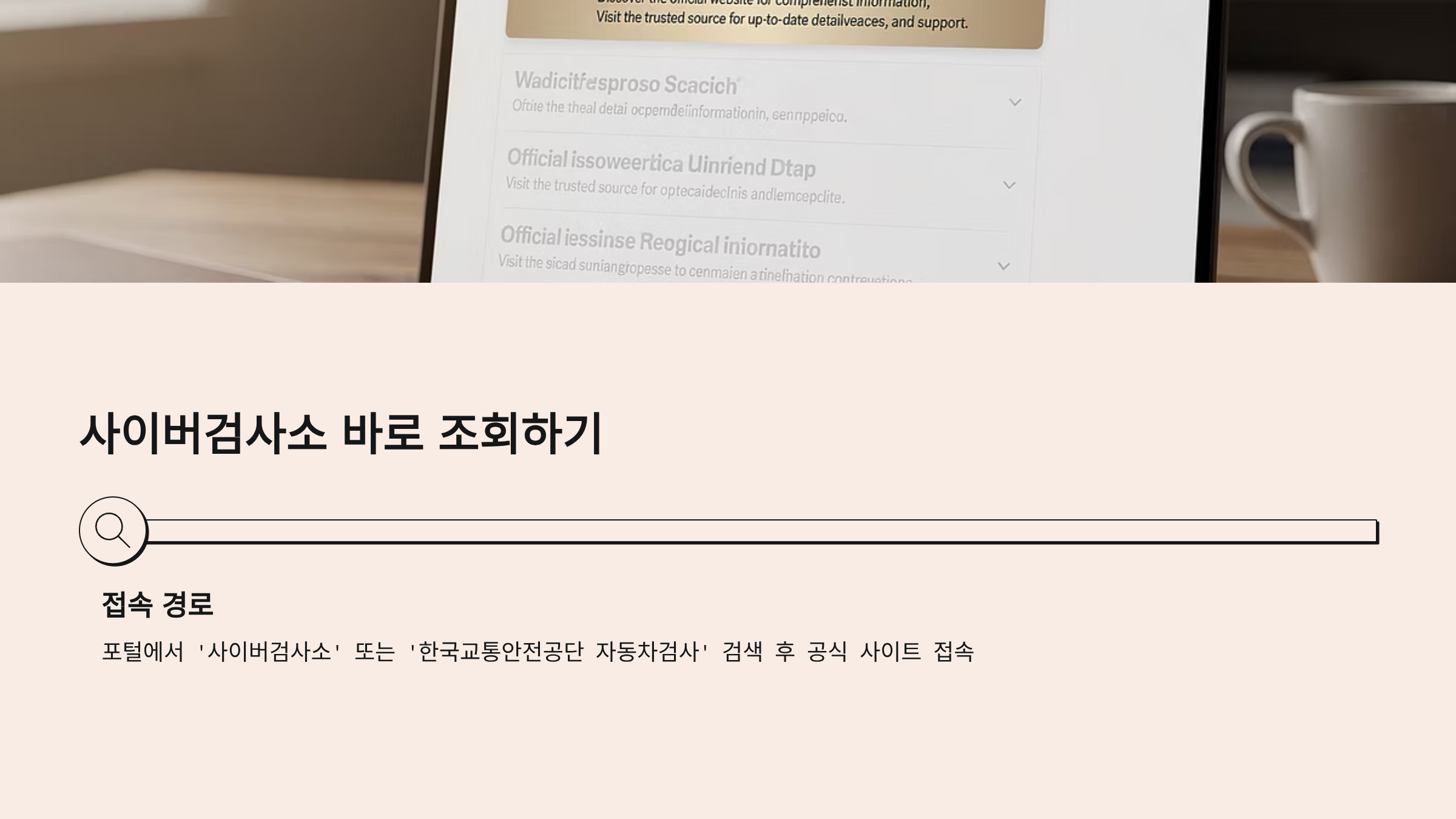 - 포털에서 ‘사이버검사소’ 또는 ‘한국교통안전공단 자동차검사’ 검색 → 공식 사이트 접속.
