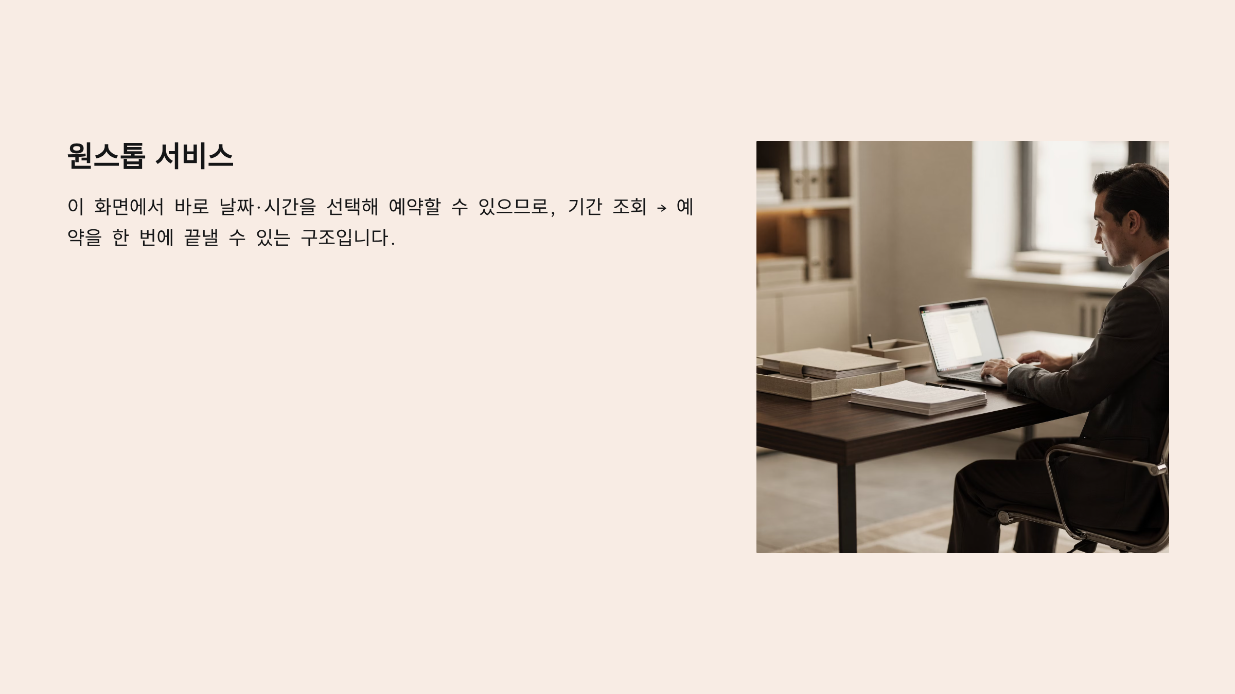 이 화면에서 바로 날짜·시간을 선택해 예약할 수 있으므로, 기간 조회 → 예약을 한 번에 끝낼 수 있는 구조입니다.