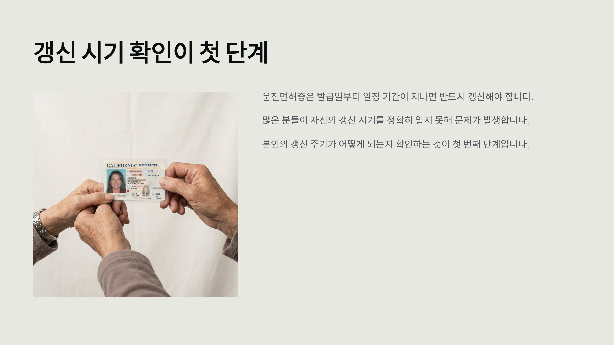 - 고령 운전자 갱신 주기 단축 (65~75세는 5년, 75세 이상은 3년)