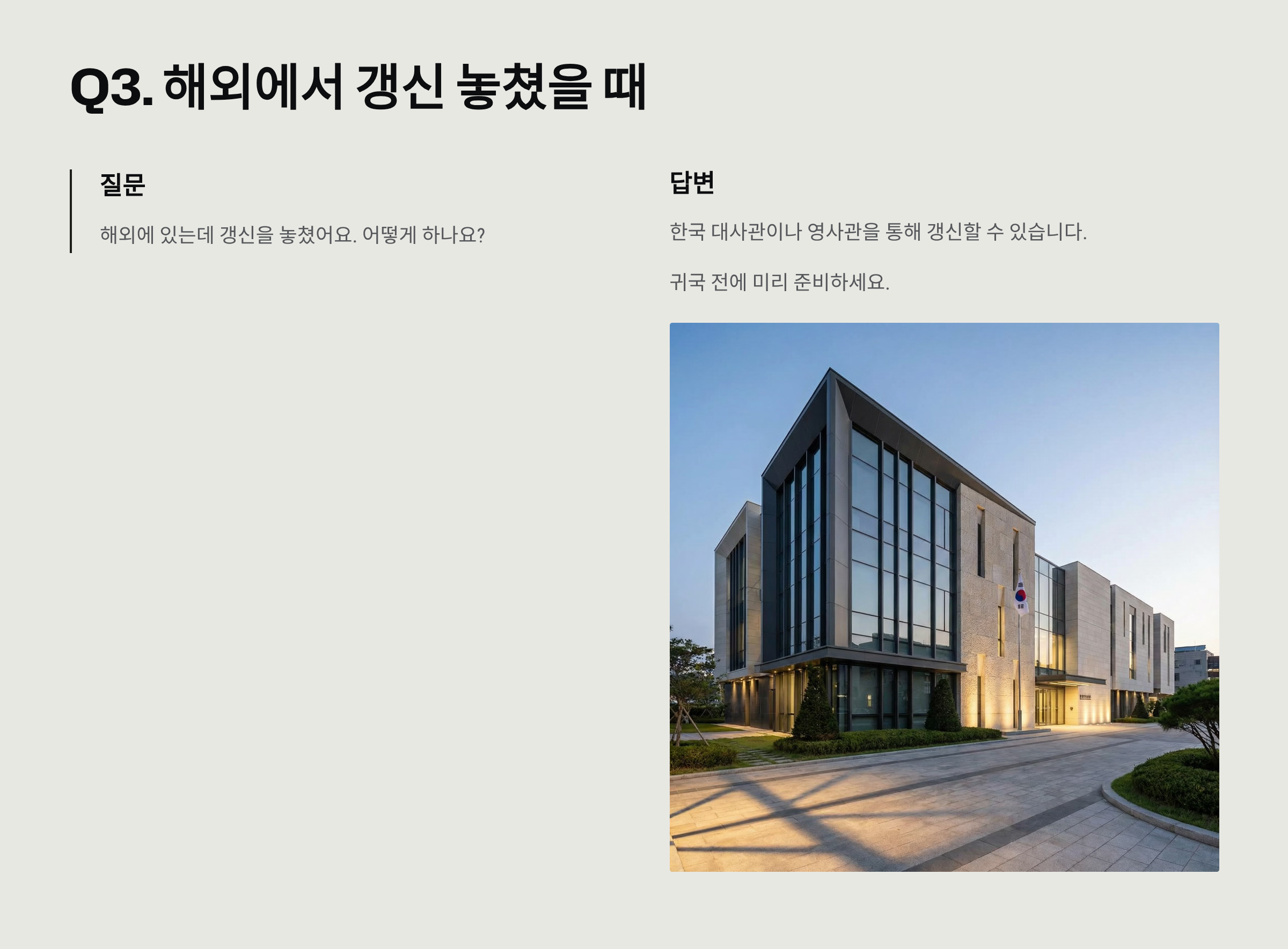 Q3. 해외에 있는데 갱신을 놓쳤어요. 어떻게 하나요?