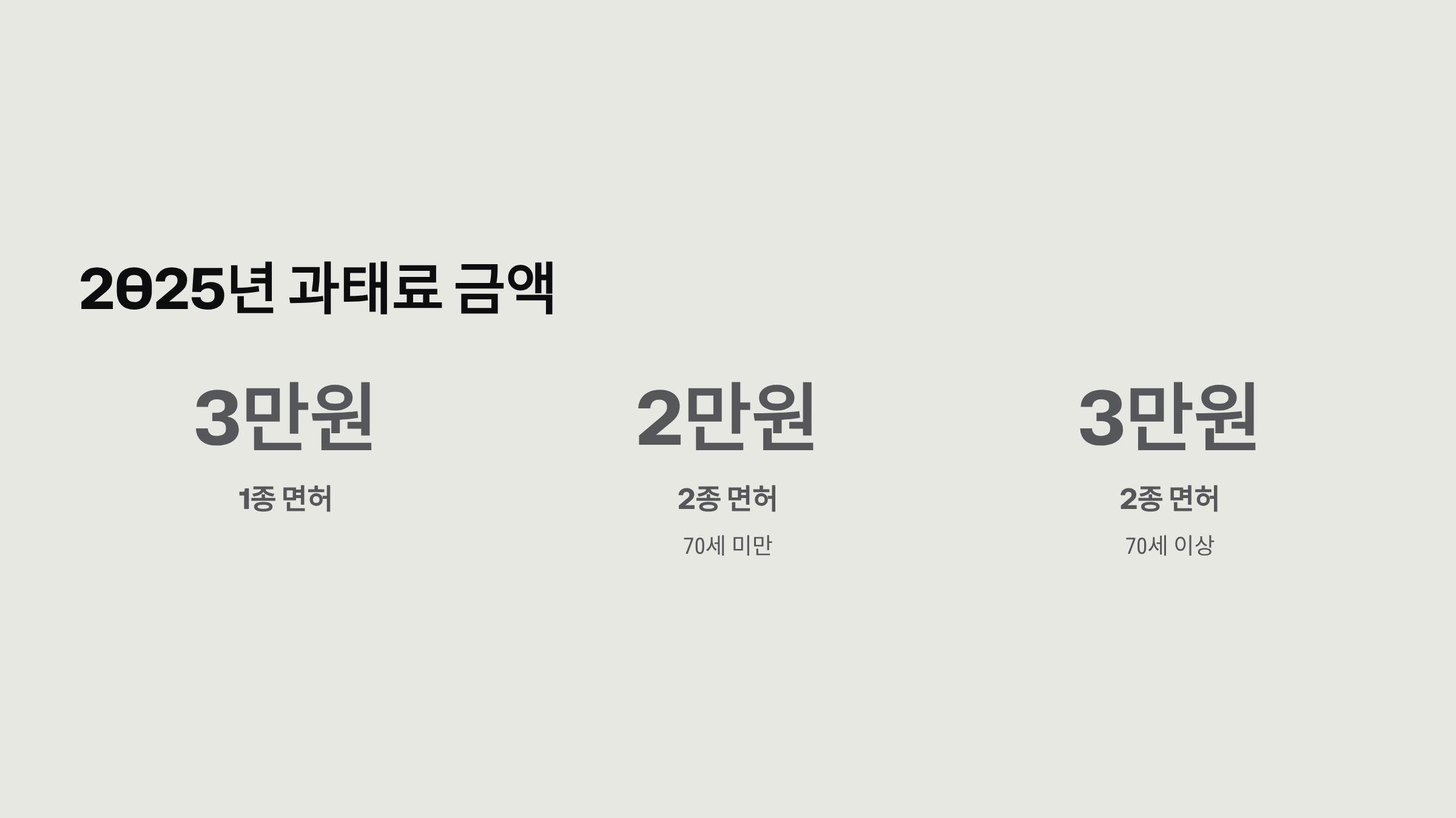 2025년 기준 정확한 과태료 금액은 다음과 같습니다: