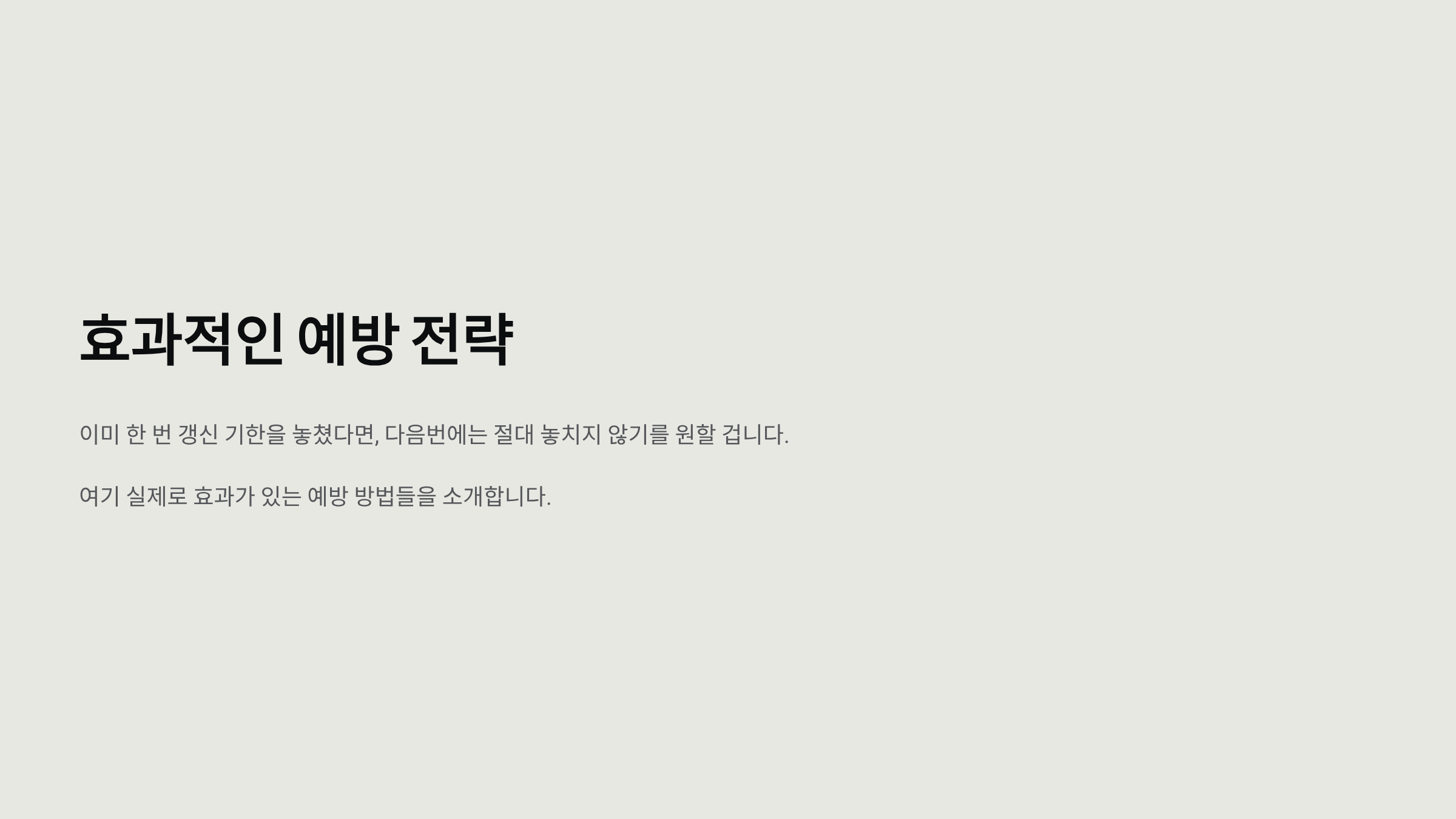 이미 한 번 갱신 기한을 놓쳤다면, 다음번에는 절대 놓치지 않기를 원할 겁니다. 여기 실제로 효과가 있는 예방 방법들을 소개합니다.