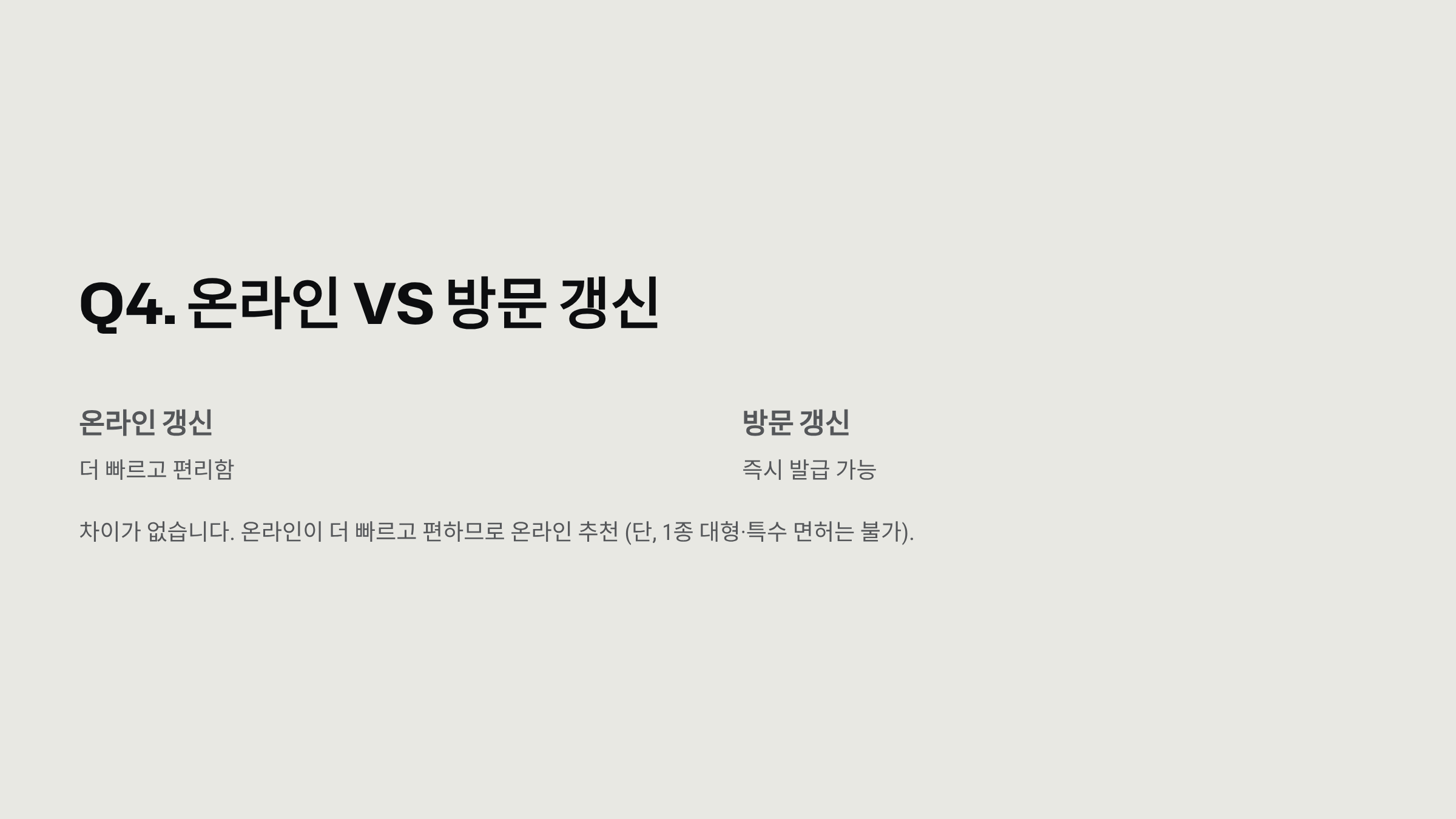 Q4. 온라인 갱신과 방문 갱신의 차이가 있나요?