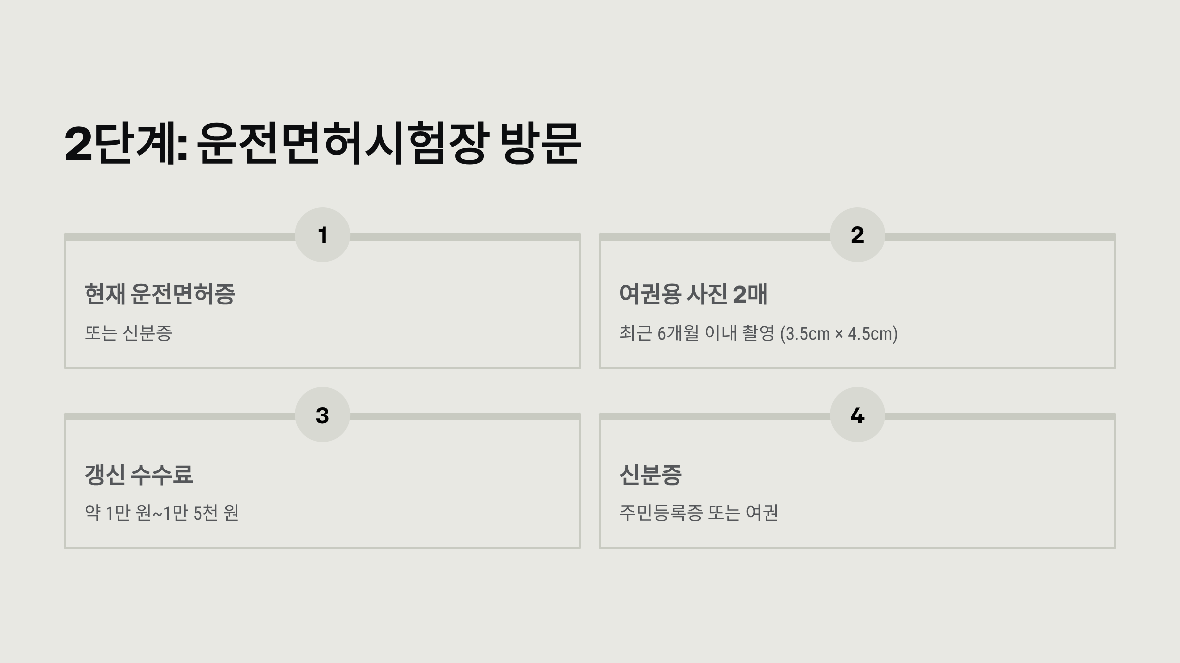 - 즉시 갱신 절차 진행: 바로 면허시험장에 방문하여 갱신 신청