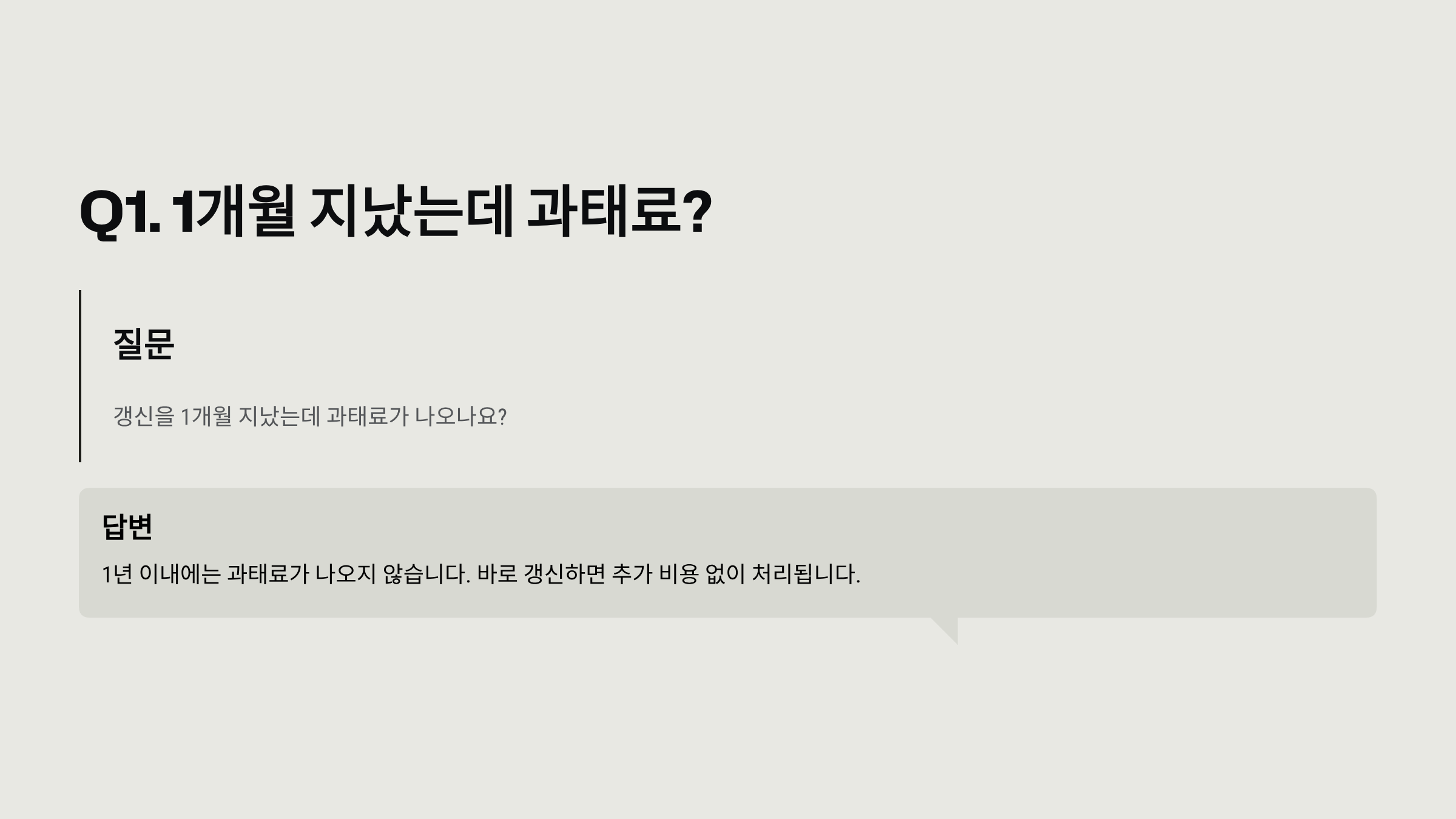 Q1. 갱신을 1개월 지났는데 과태료가 나오나요?