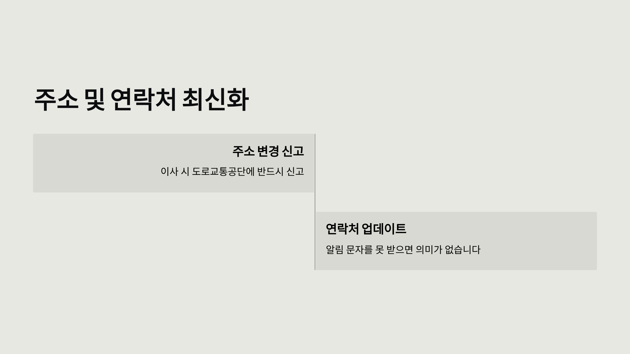 - 주소 변경 시 도로교통공단에 반드시 신고하세요