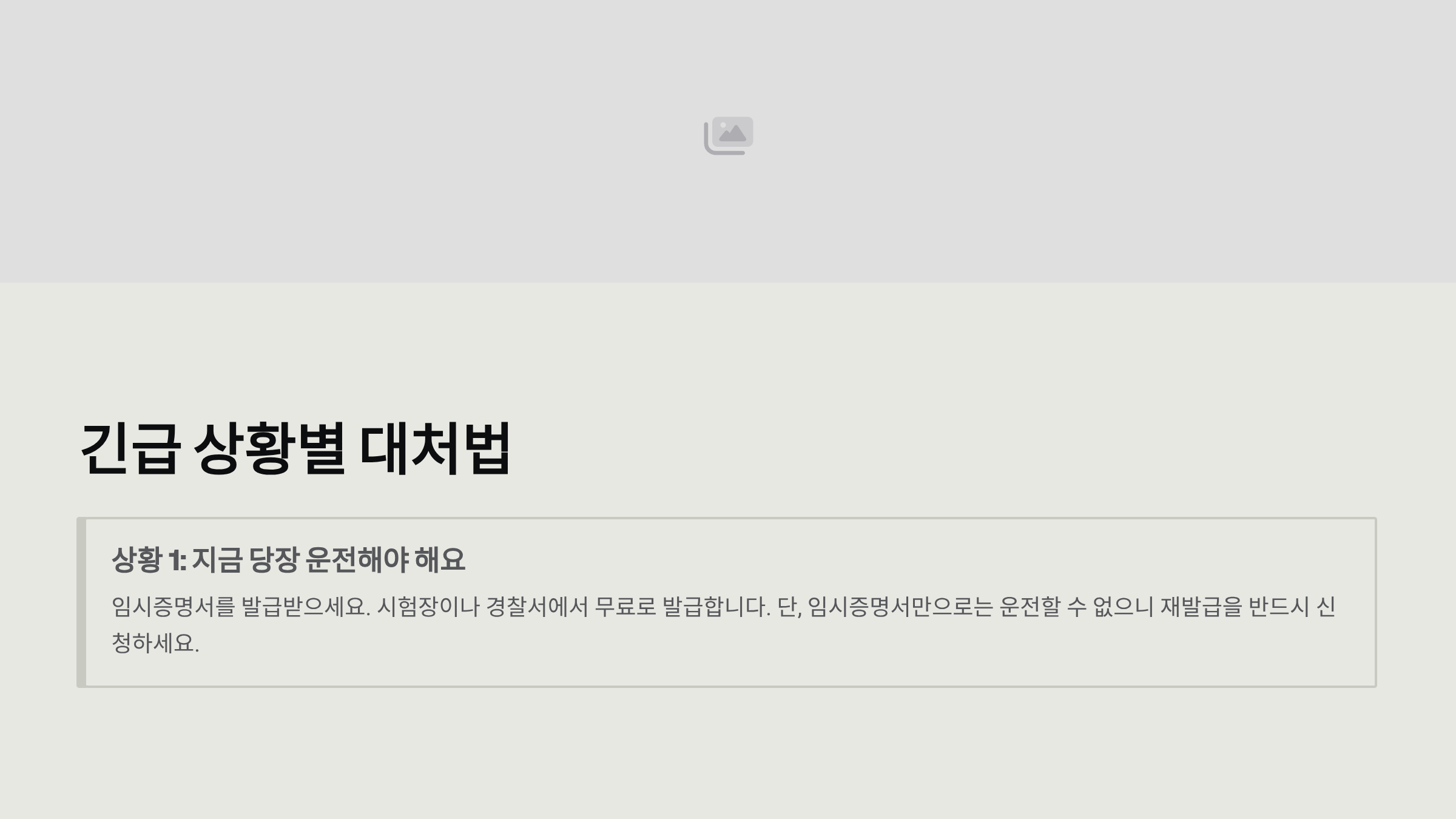 → 임시증명서를 발급받으세요. 시험장이나 경찰서에서 무료로 발급합니다. 단, 임시증명서만으로는 운전할 수 없으니 (법상 무면허), 재발급을 반드시 신청하세요.