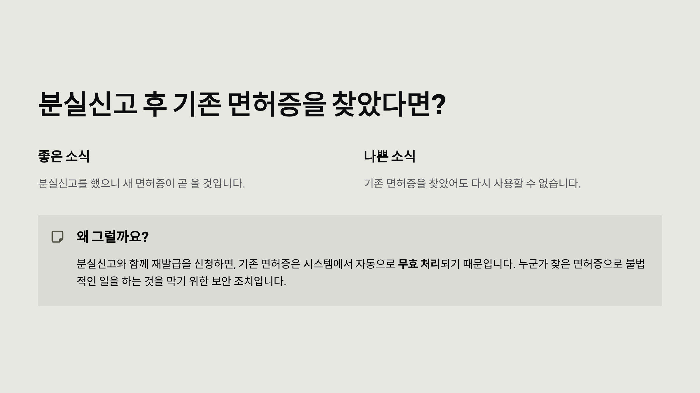 - 기존 면허증을 찾았더라도 사용할 수 없음