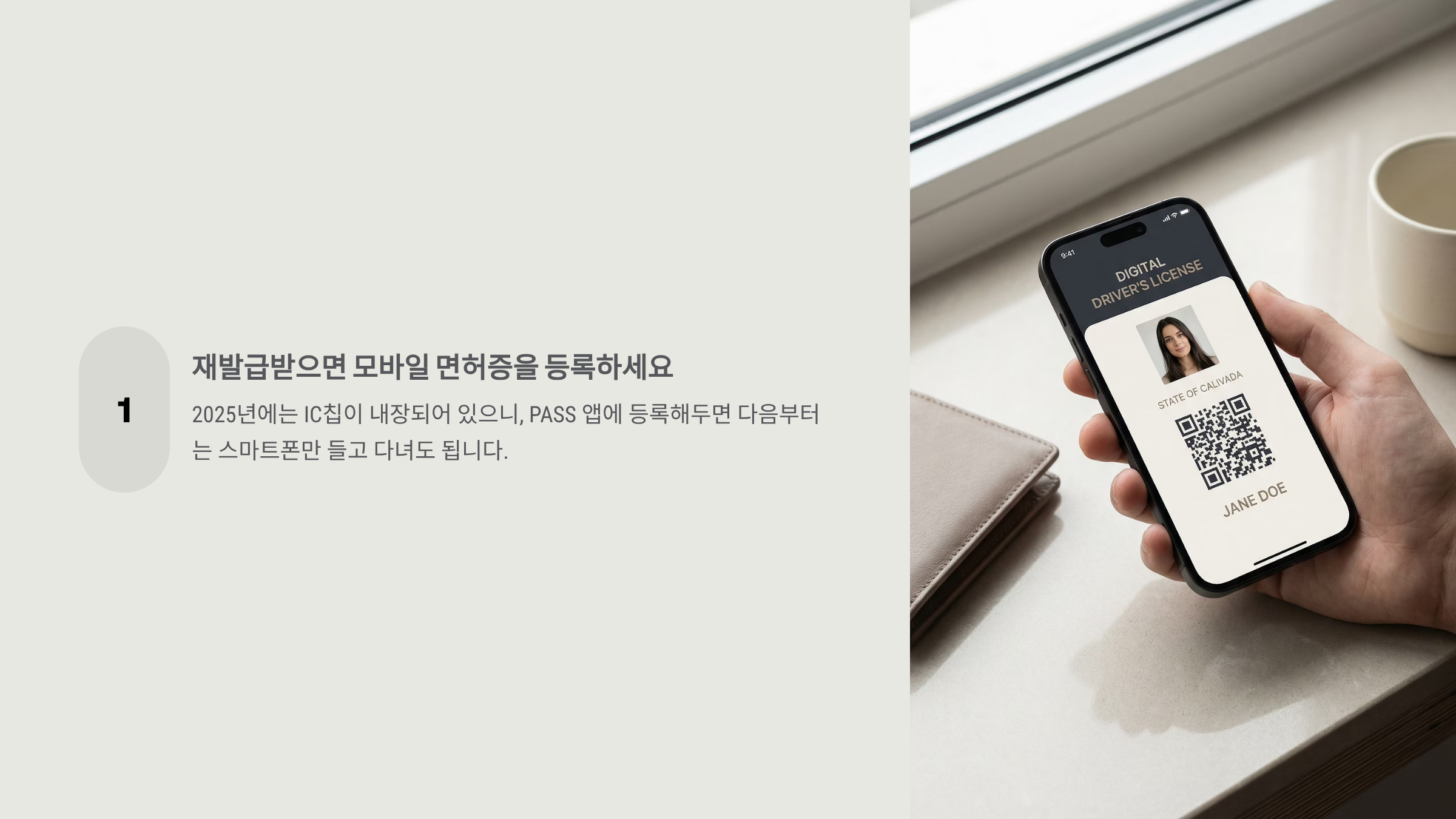 - 모바일 운전면허증 자동 연동: PASS 앱이나 정부24 앱에 등록하면 스마트폰에서도 신분증으로 사용 가능