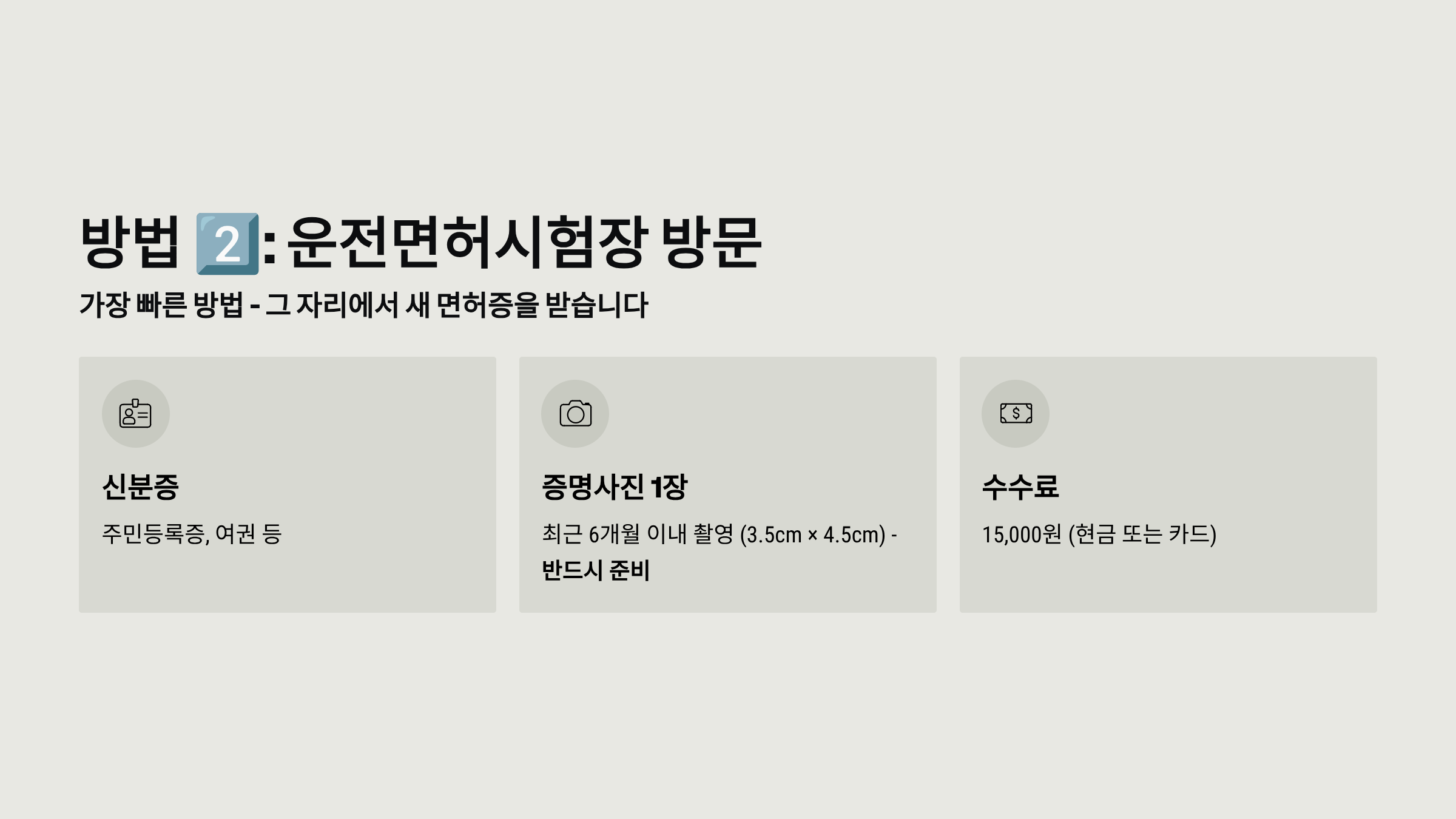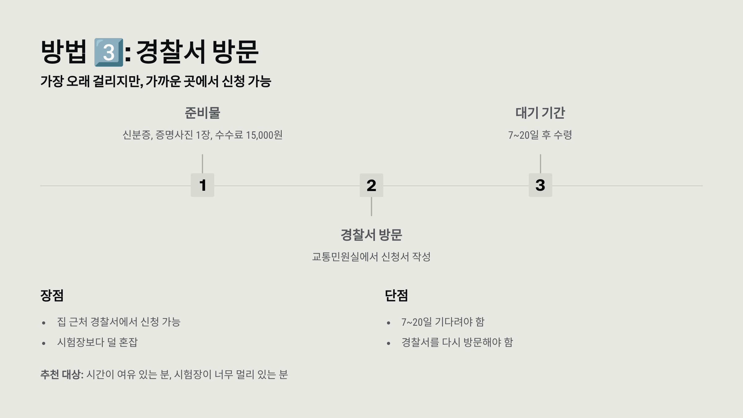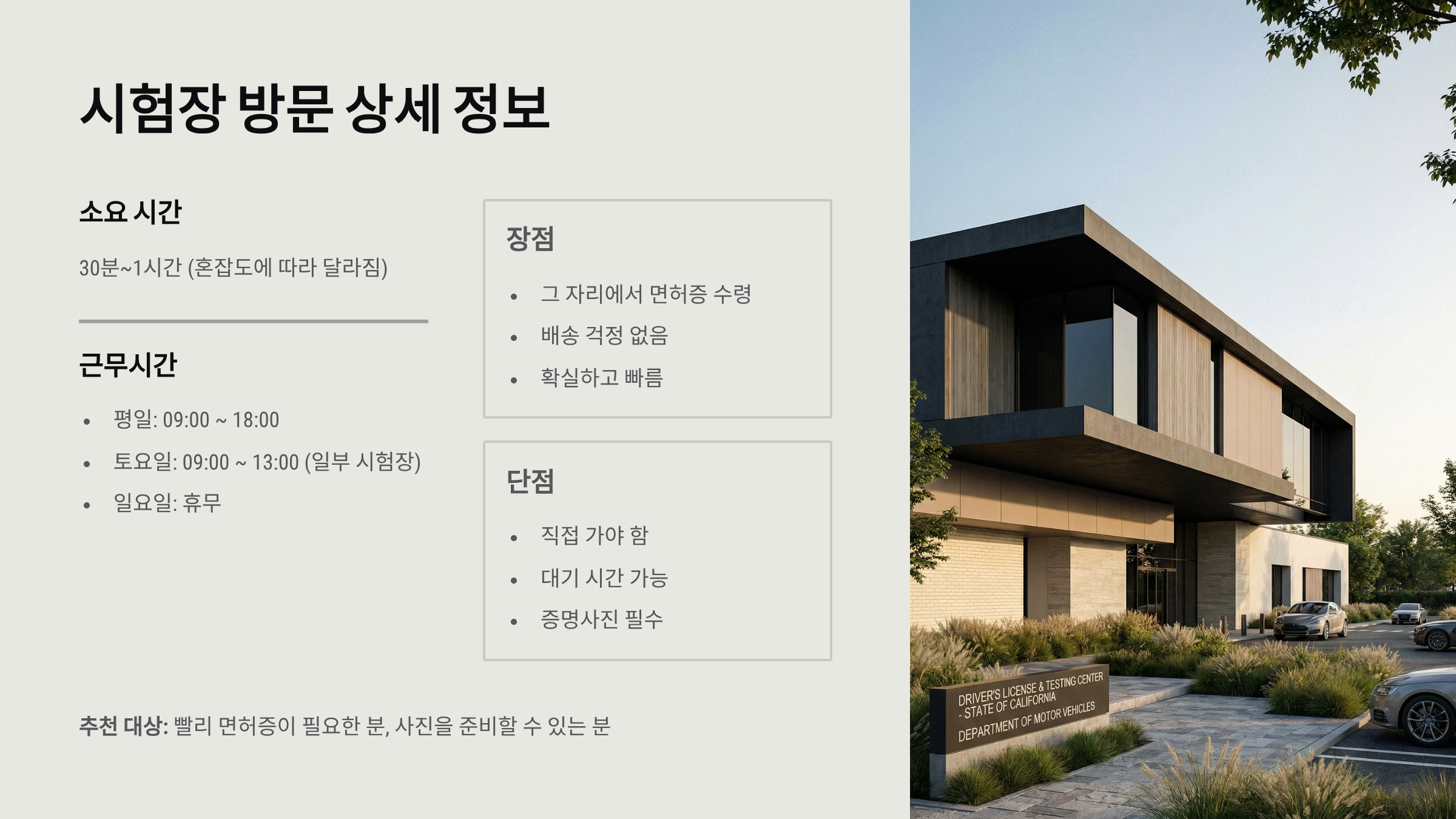 추천 대상: 빨리 면허증이 필요한 분, 사진을 준비할 수 있는 분