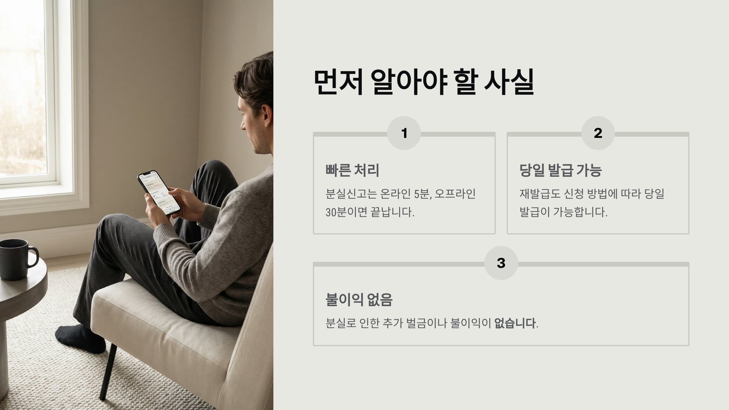 - 분실신고는 매우 빠르게 끝난다는 것 (온라인 5분, 오프라인 30분)