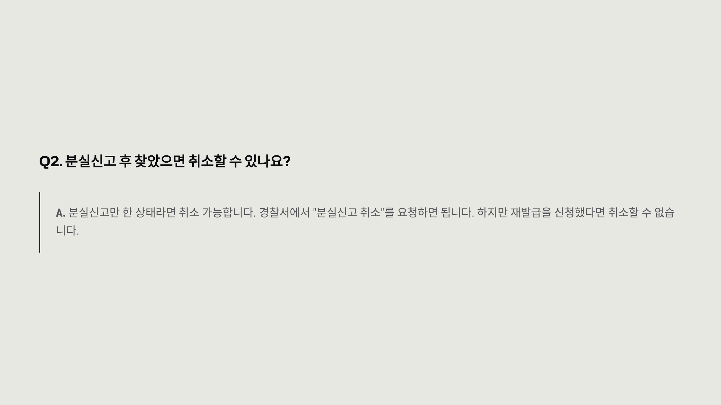 Q2. 분실신고 후 찾았으면 취소할 수 있나요?