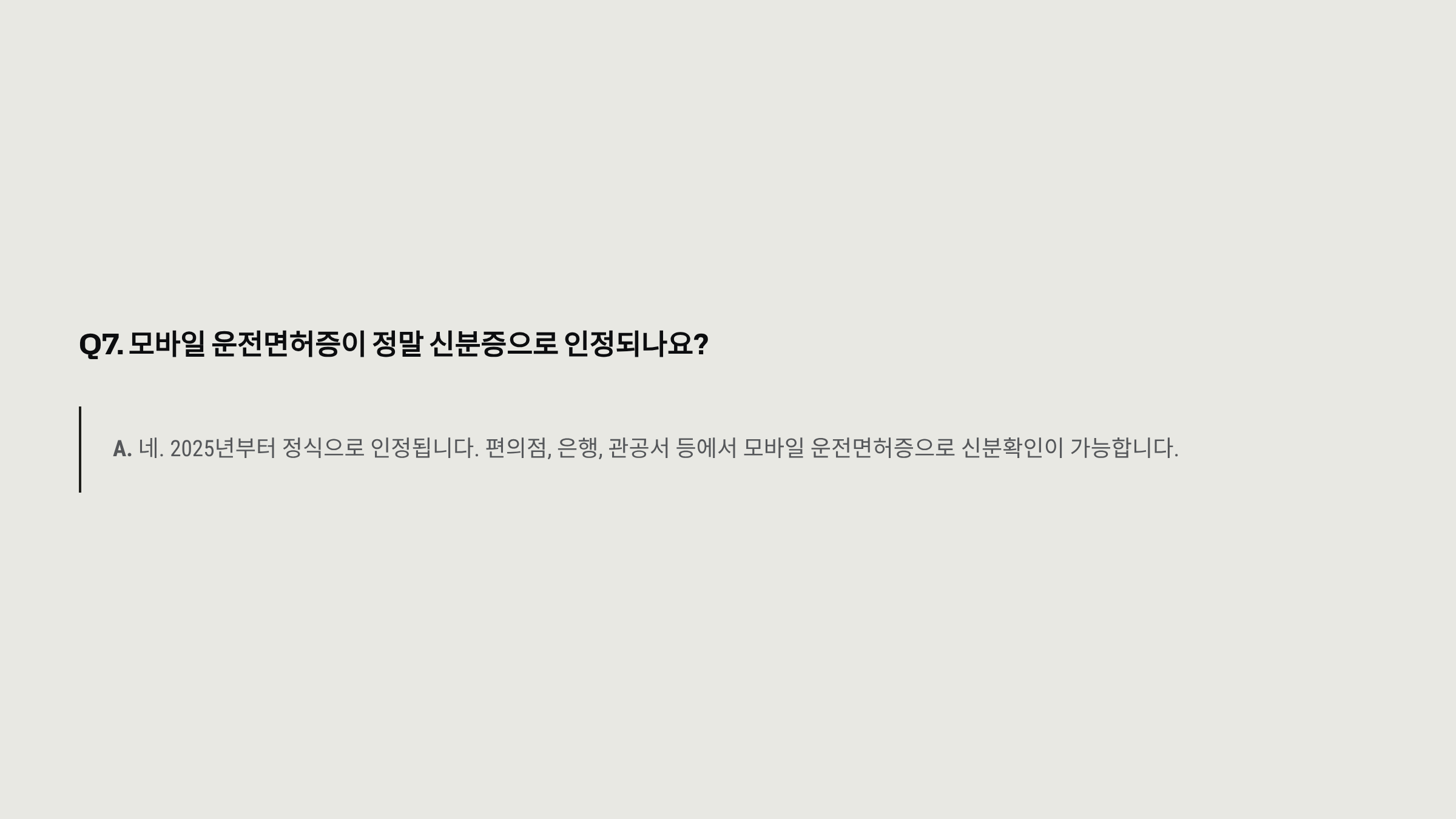 Q7. 모바일 운전면허증이 정말 신분증으로 인정되나요?