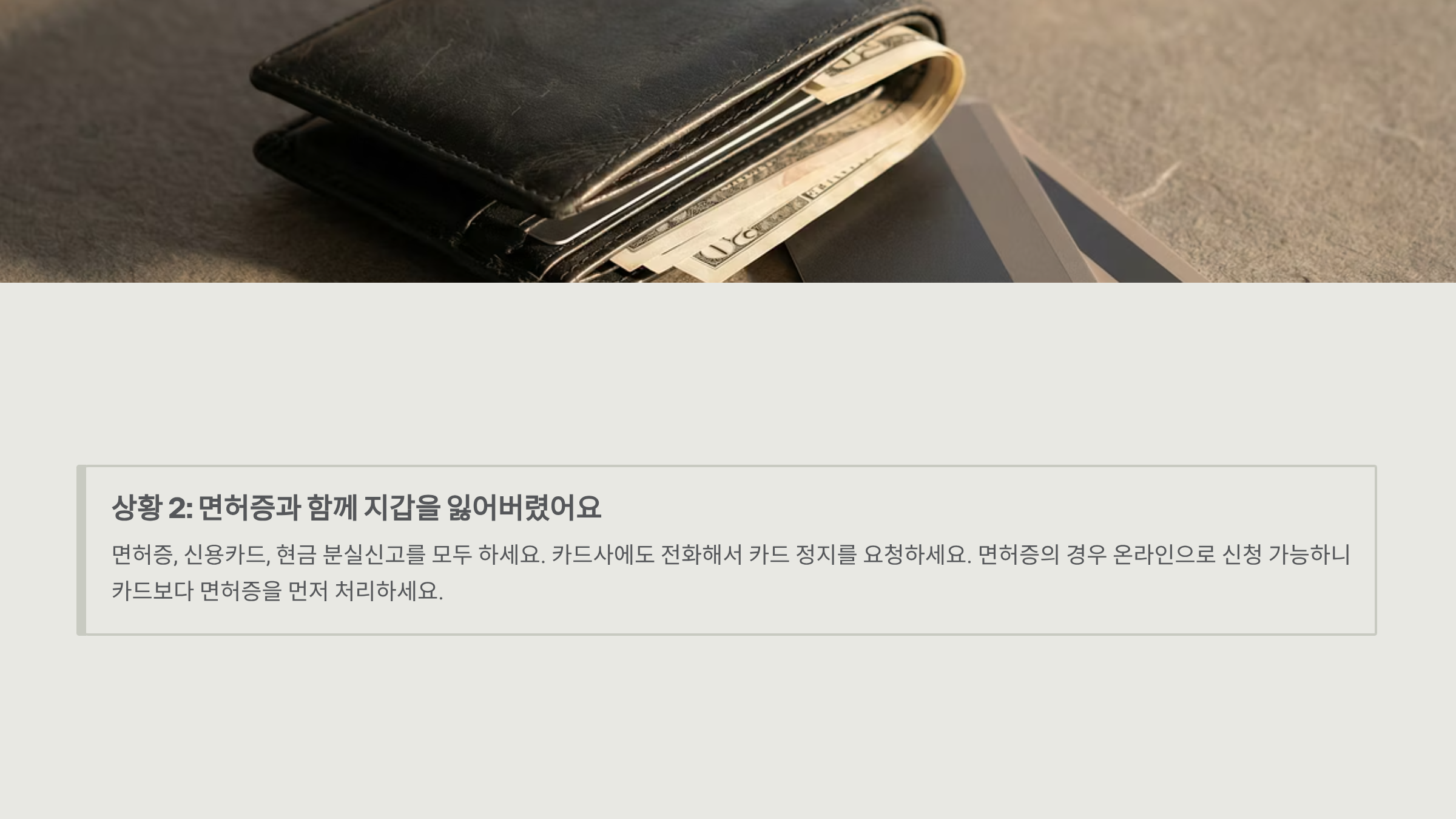 상황 2: 면허증과 함께 지갑을 잃어버렸어요