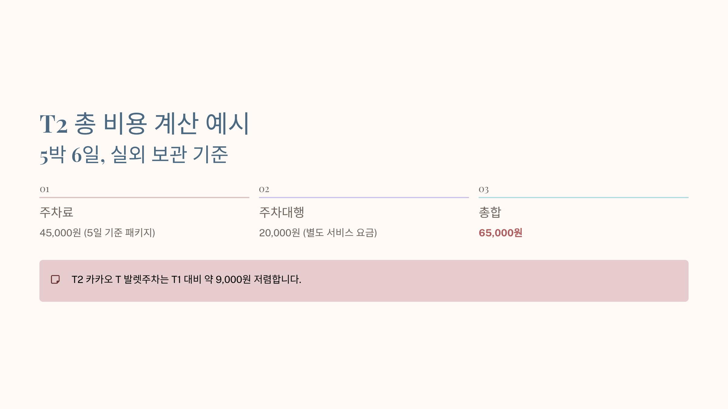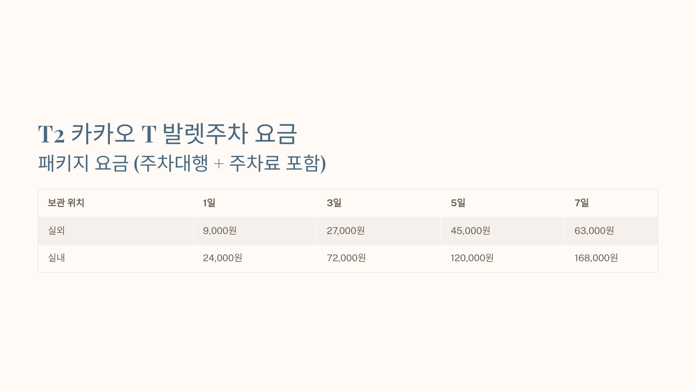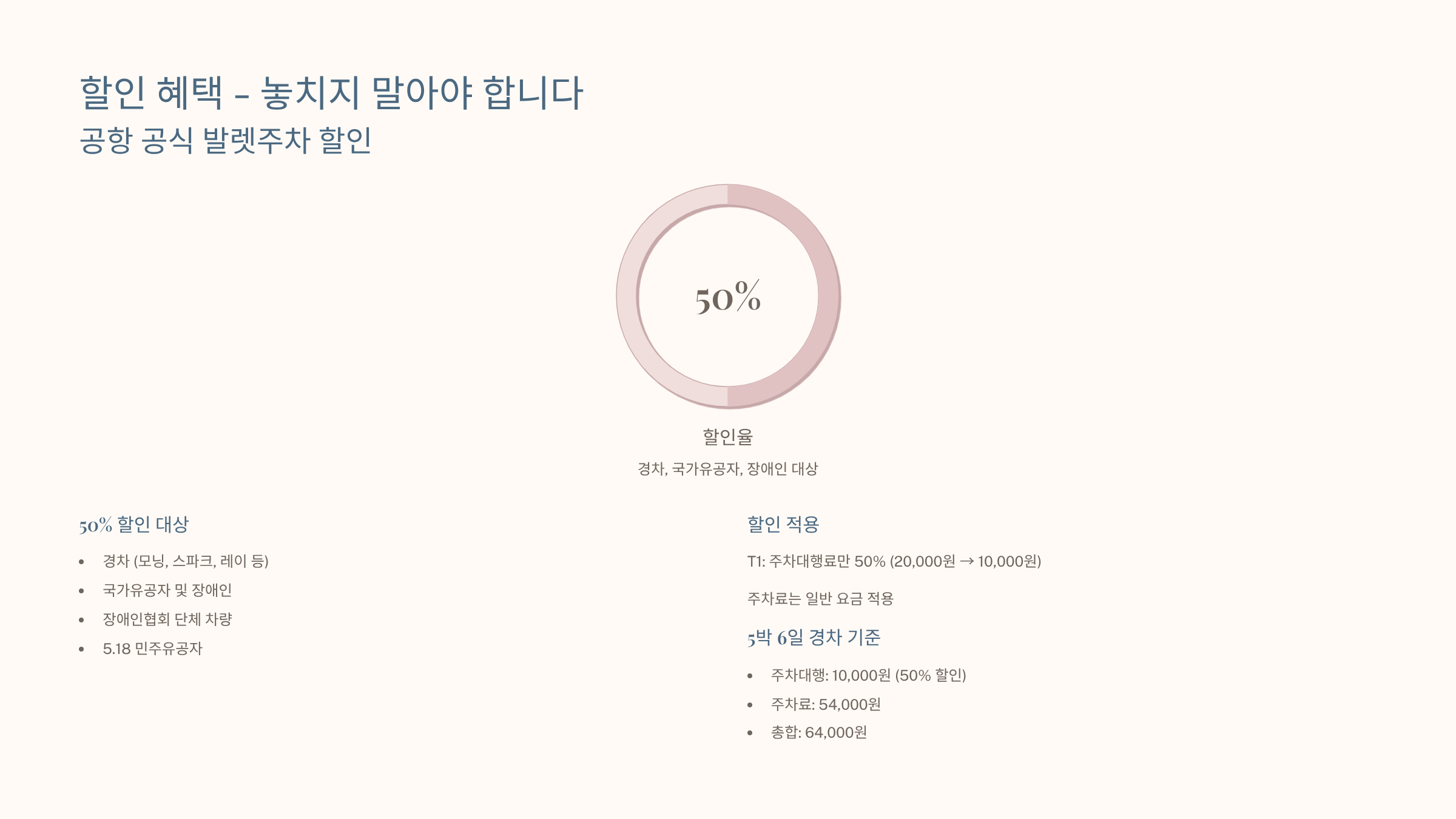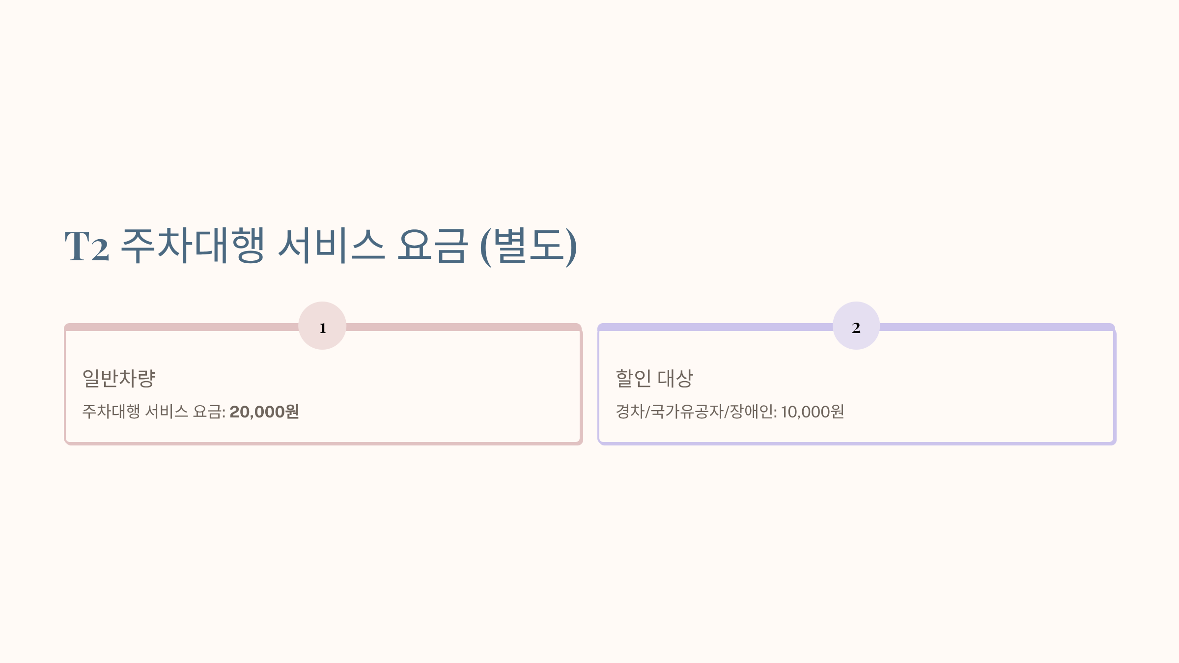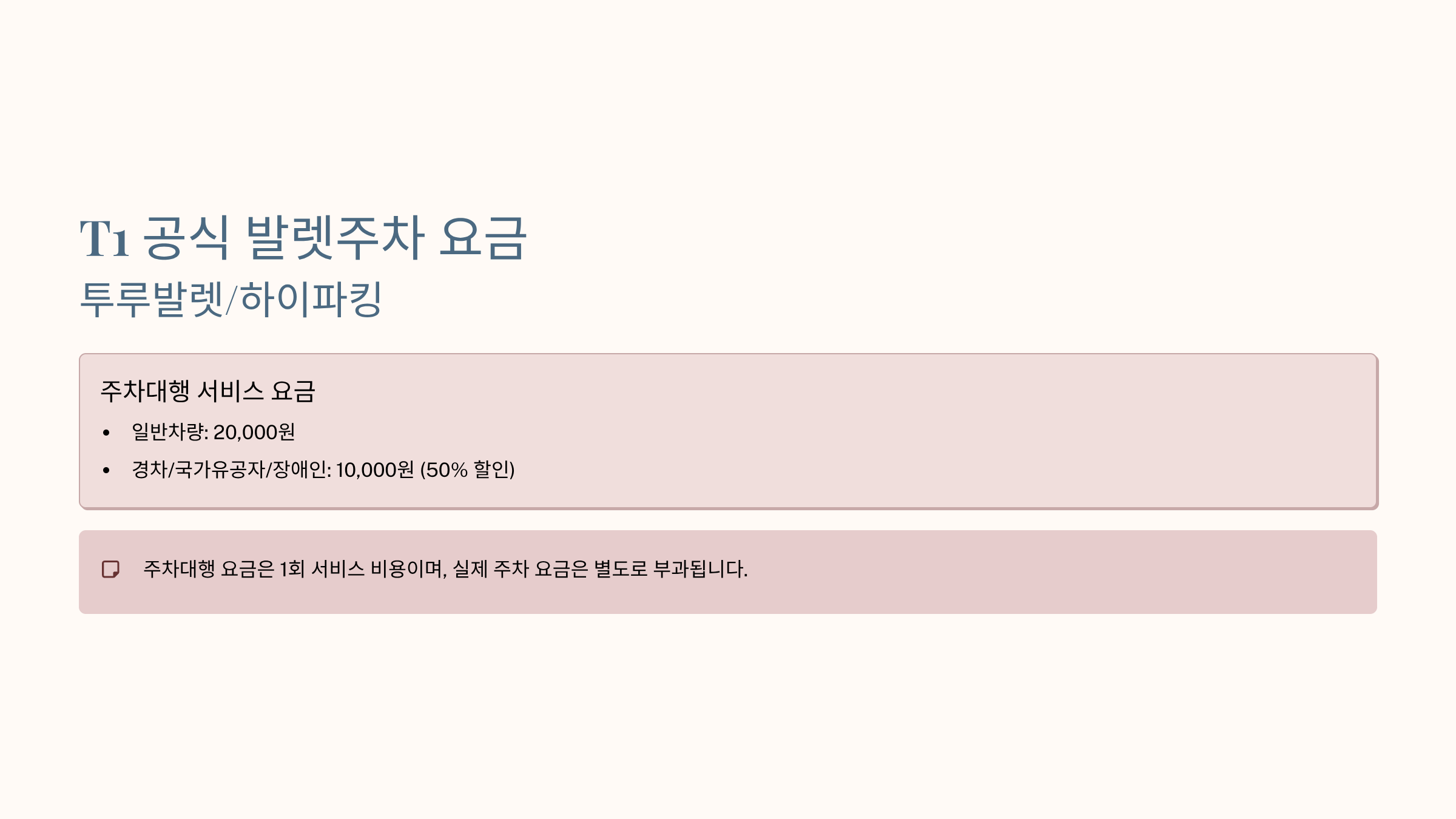 - T1: 주차대행료만 50% (20,000원 → 10,000원)