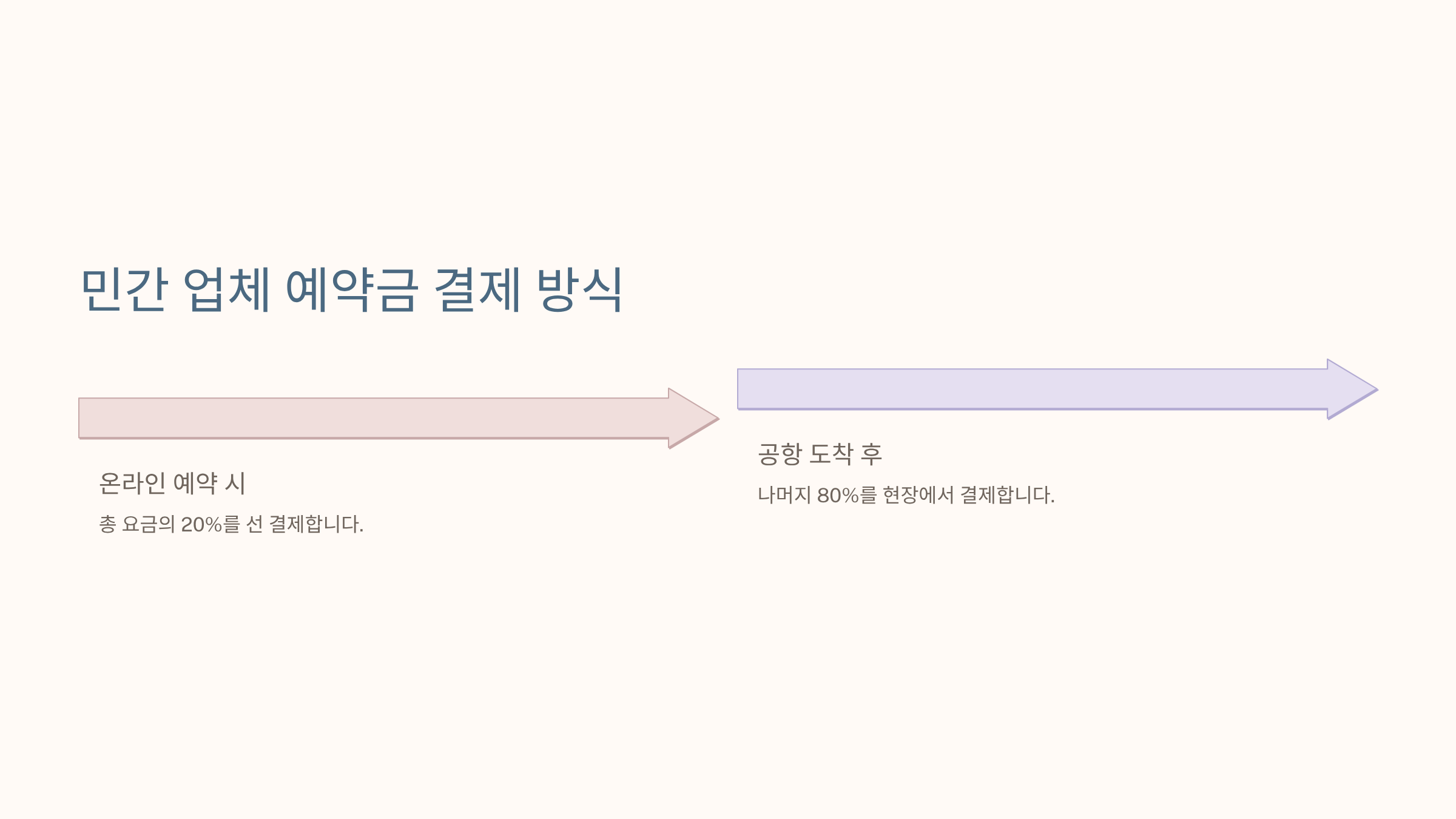 - 공항 도착 후 나머지 80% 결제