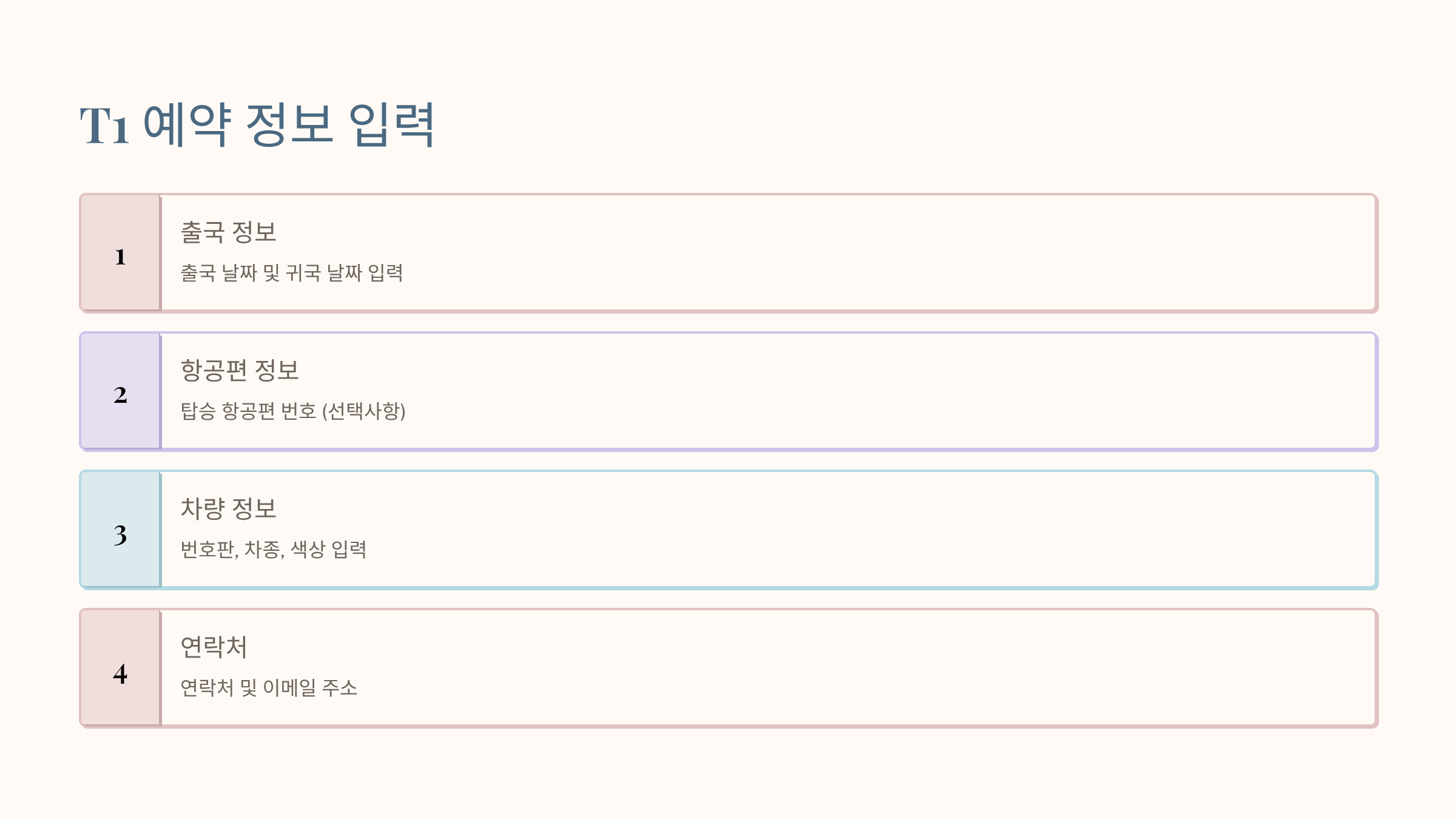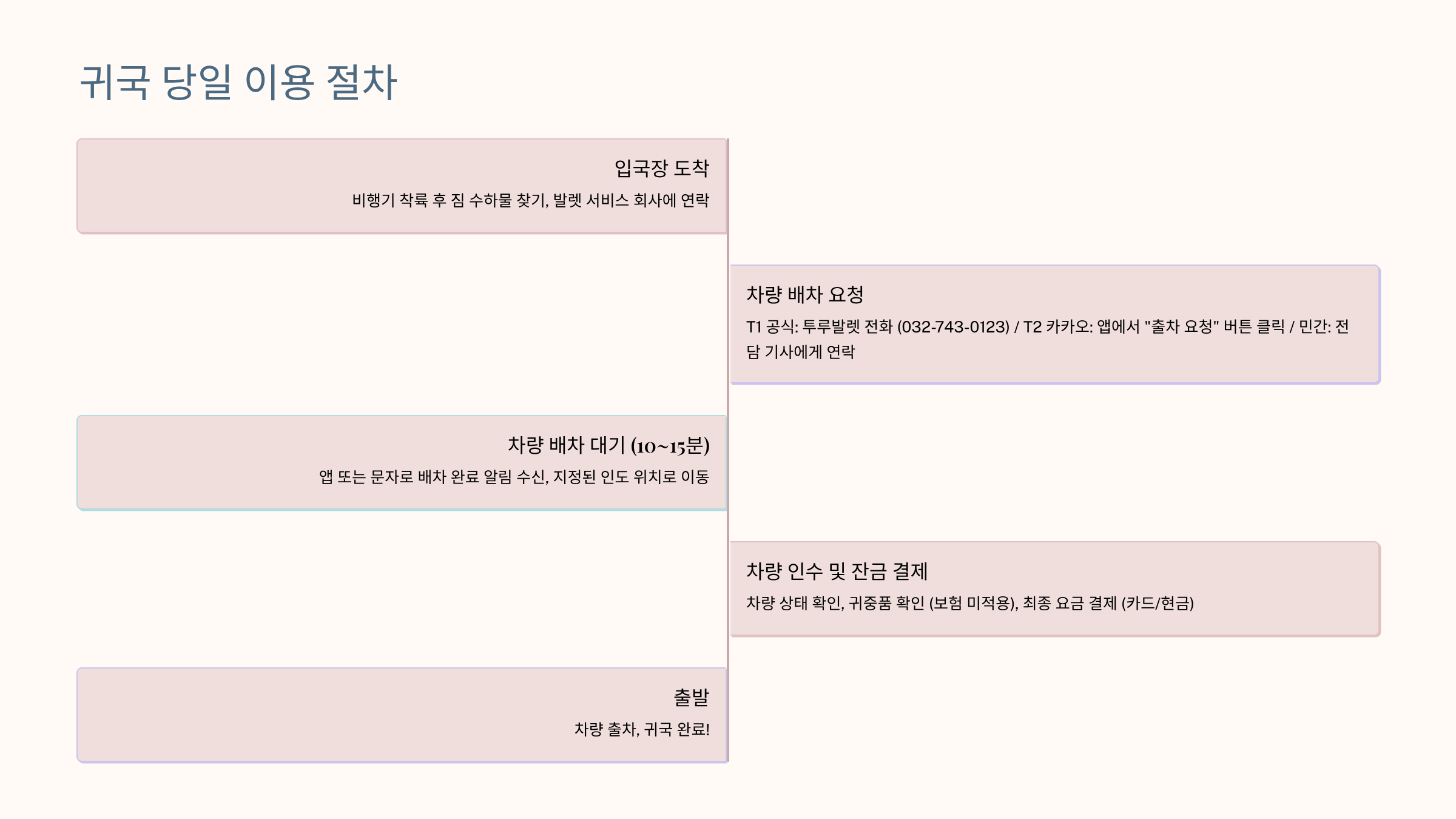 - 도착 준비: 귀국 당일은 여유 있게, 30분 전부터 연락