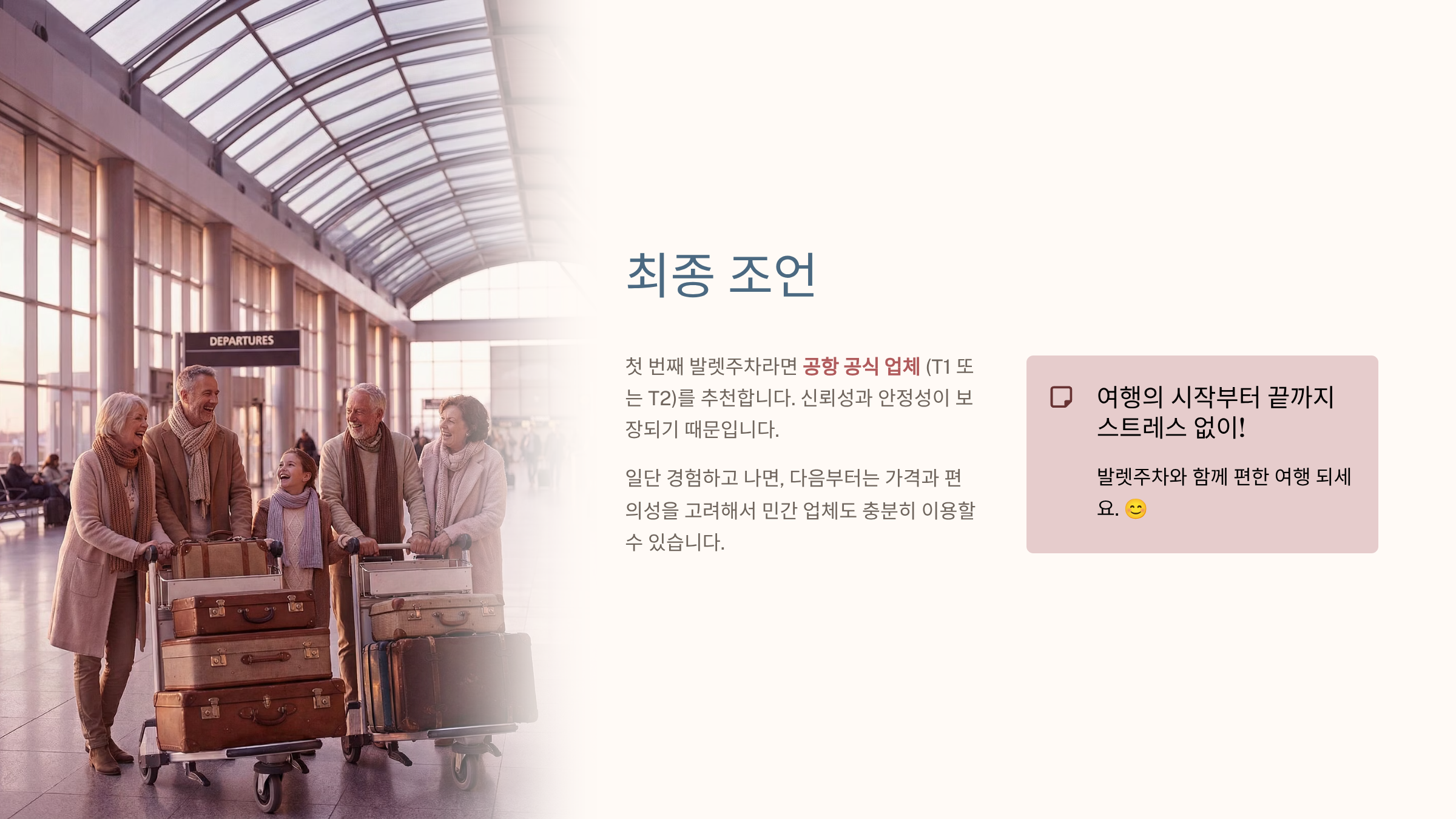 여행의 시작부터 끝까지 스트레스 없이! 발렛주차와 함께 편한 여행 되세요. 😊