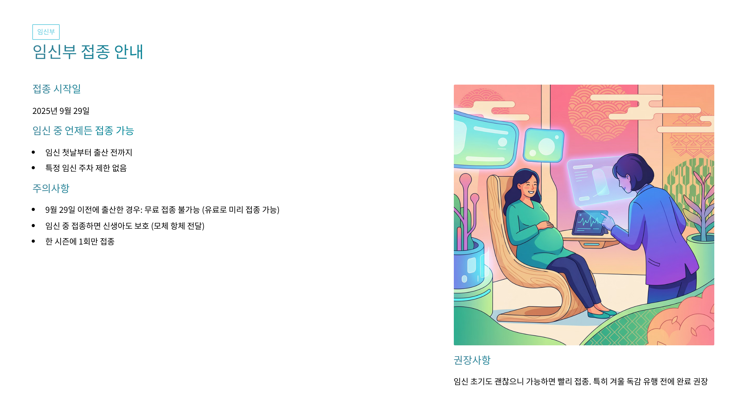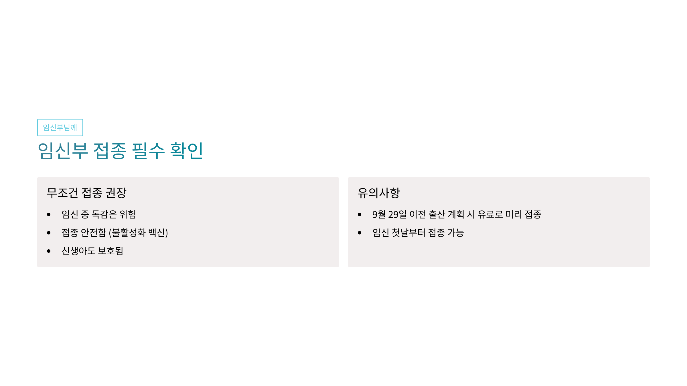 - 9월 29일 이전 출산 계획 시 유료로 미리 접종
