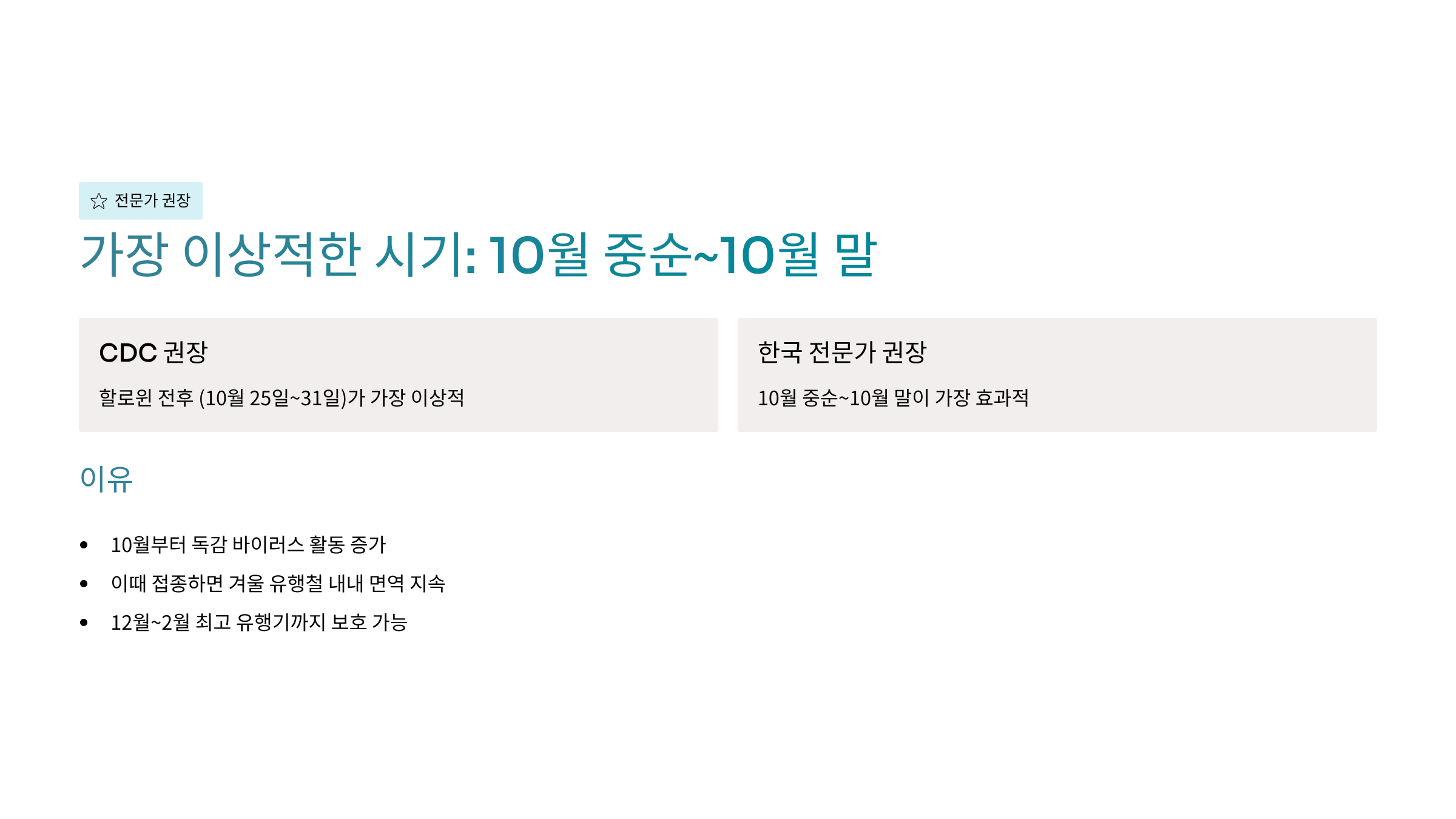 ⏰ 최적의 접종 시기 - 전문가 의견