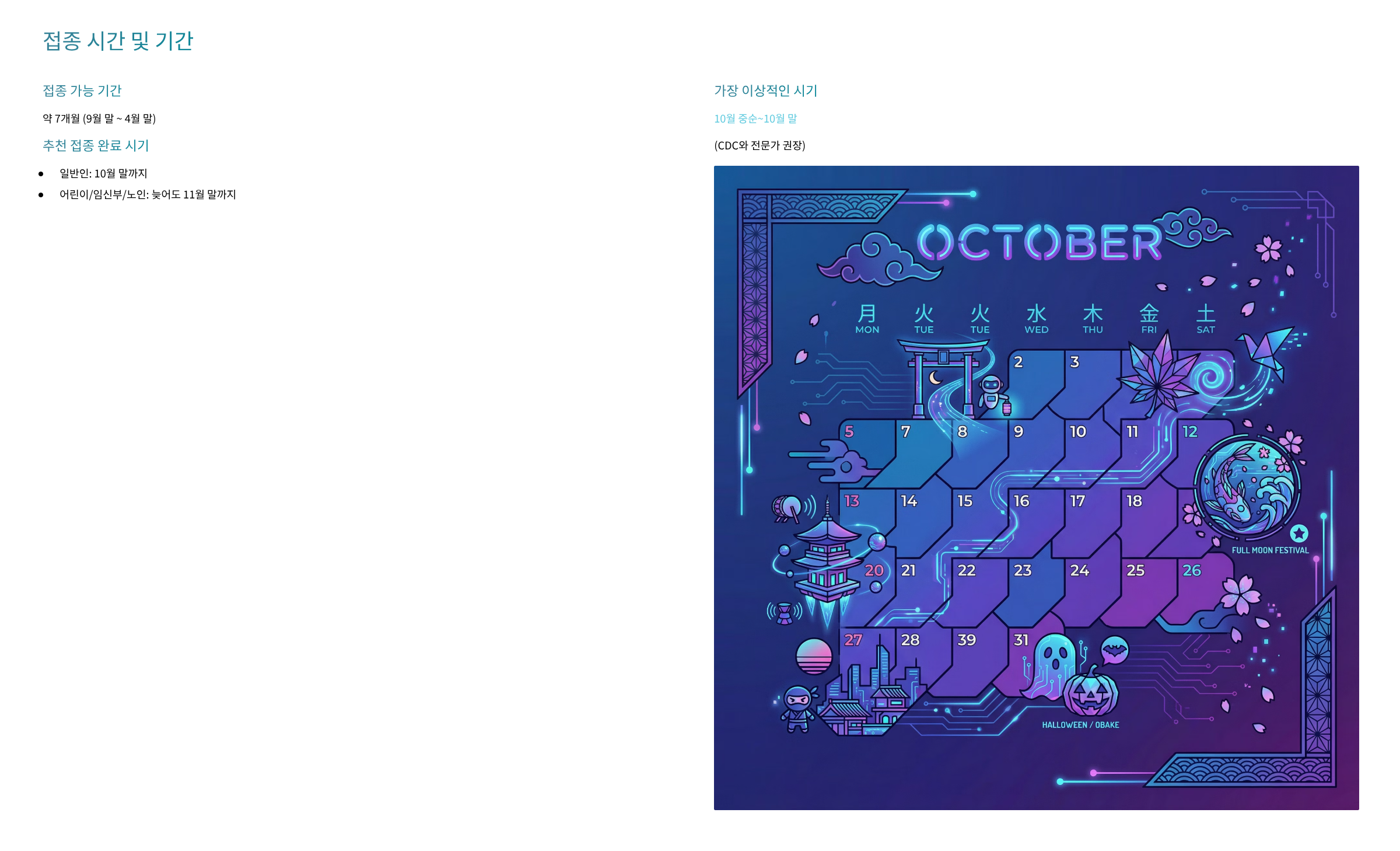 가장 이상적인 시기: 10월 중순~10월 말 (CDC와 전문가 권장)