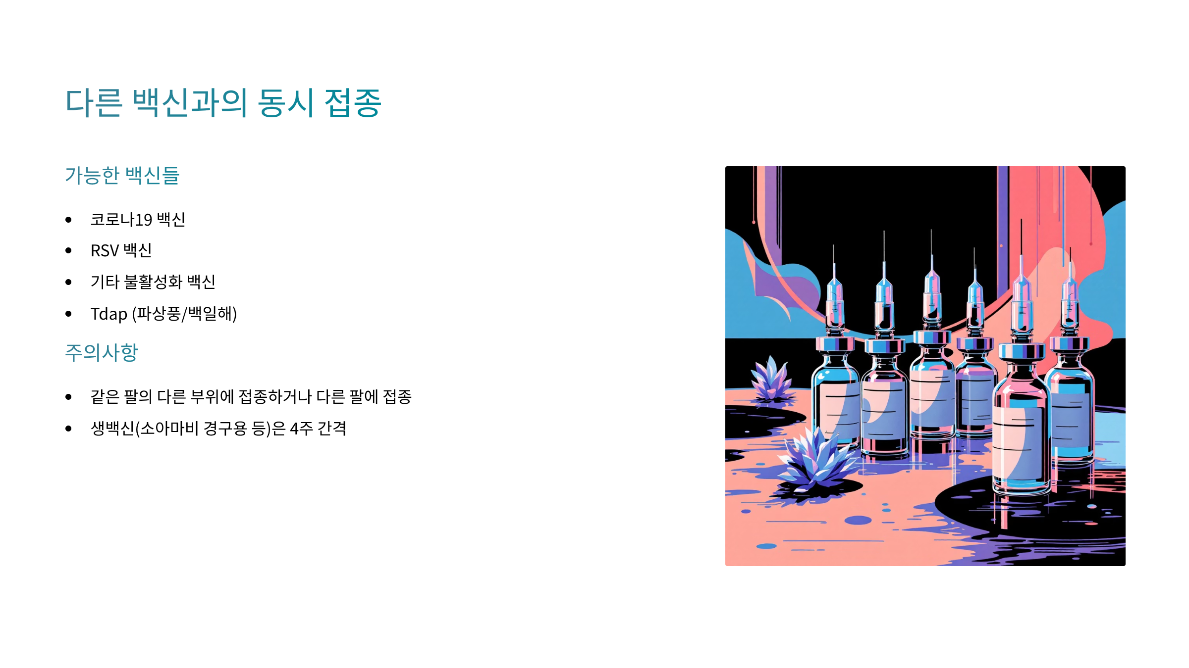 - ☑️ 다른 백신과의 조정 (4주 간격 필요시)