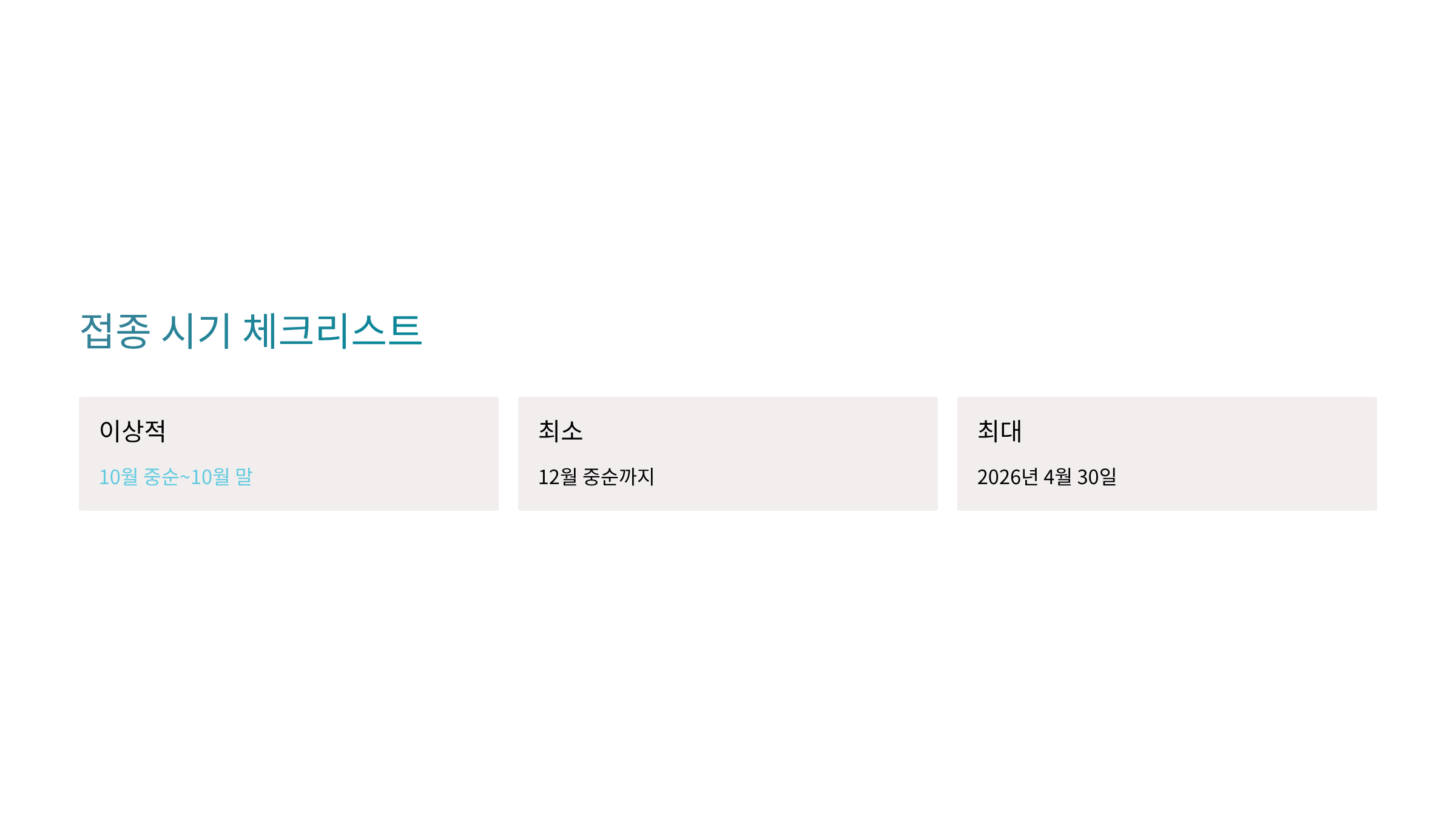 - ☑️ 내 나이/상황에 맞는 접종 시작일 확인