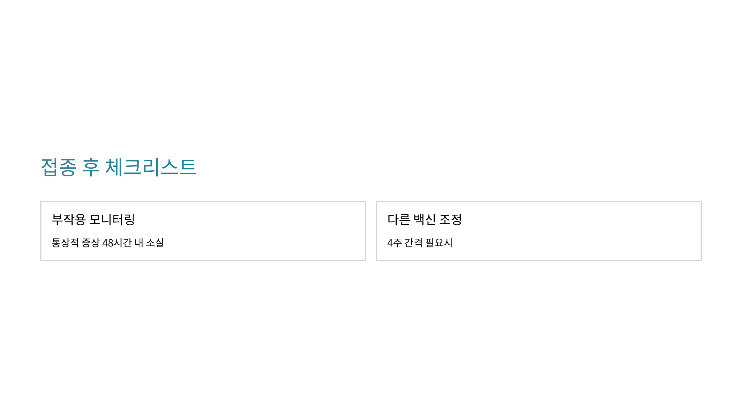 - ☑️ 부작용 모니터링 (통상적 증상 48시간 내 소실)