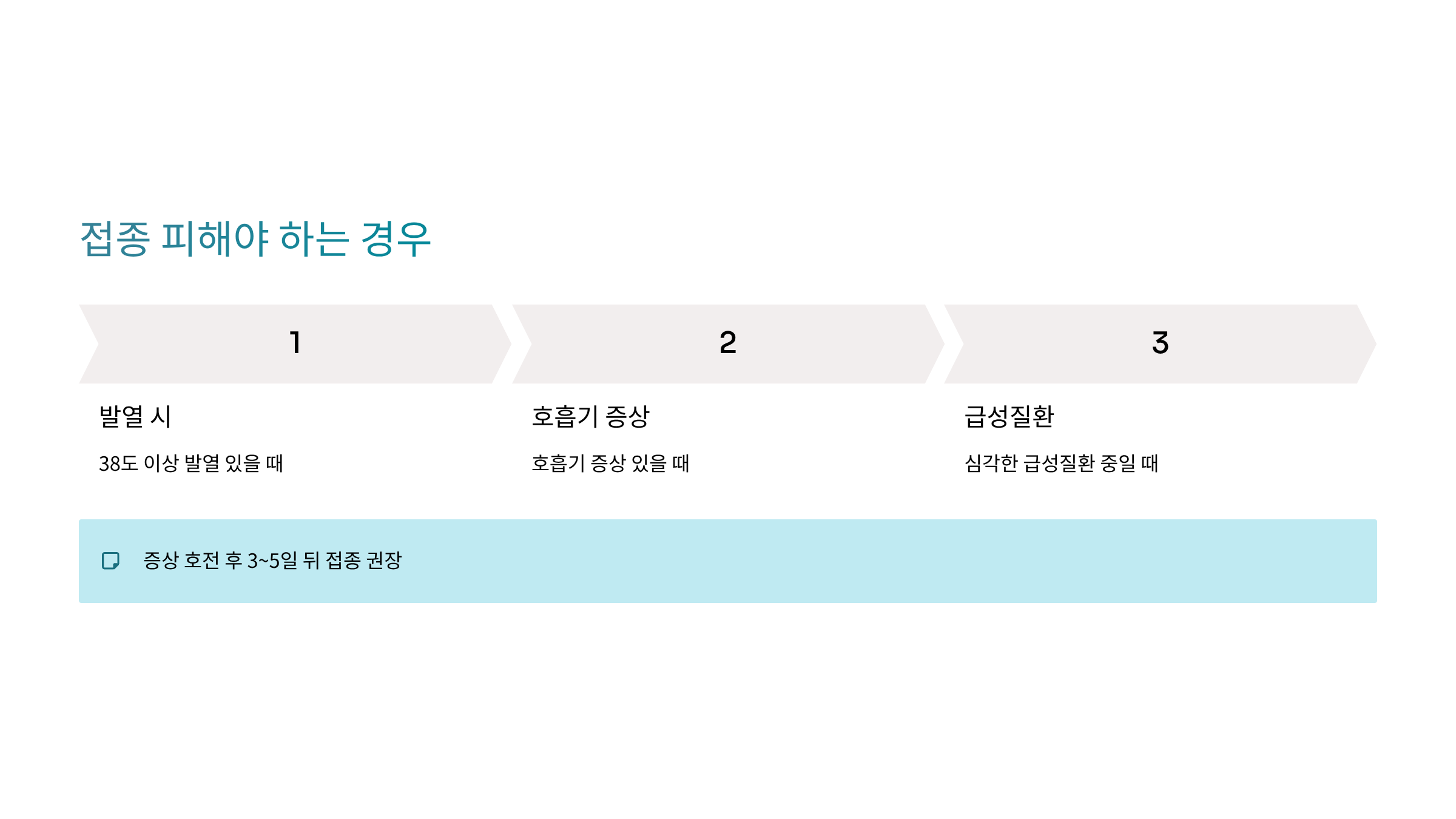 - → 증상 호전 후 3~5일 뒤 접종 권장