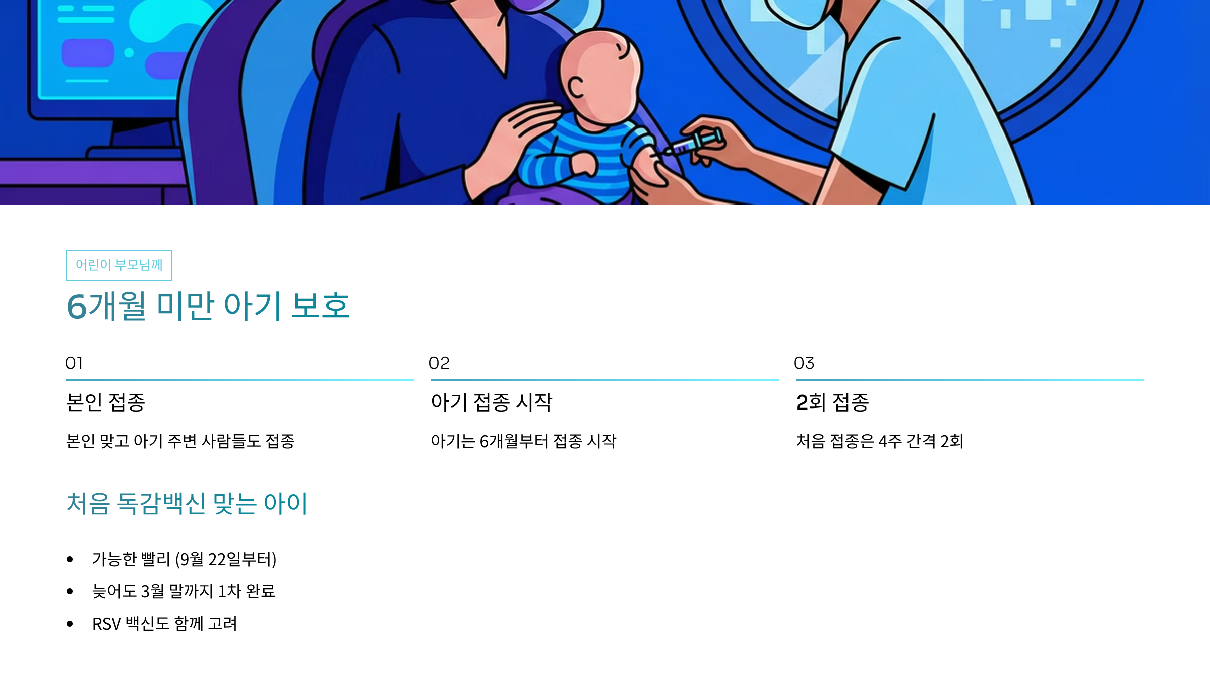 - 아기는 6개월부터 접종 시작