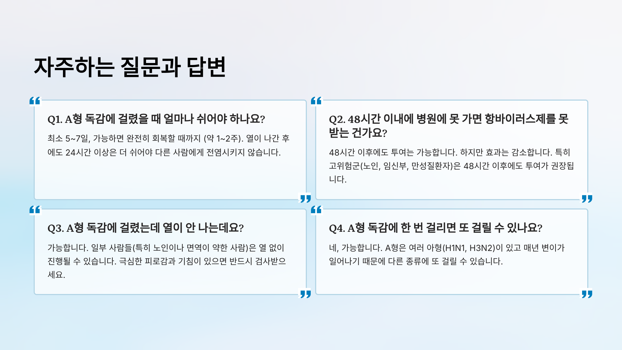 Q1. A형 독감에 걸렸을 때 얼마나 쉬어야 하나요?