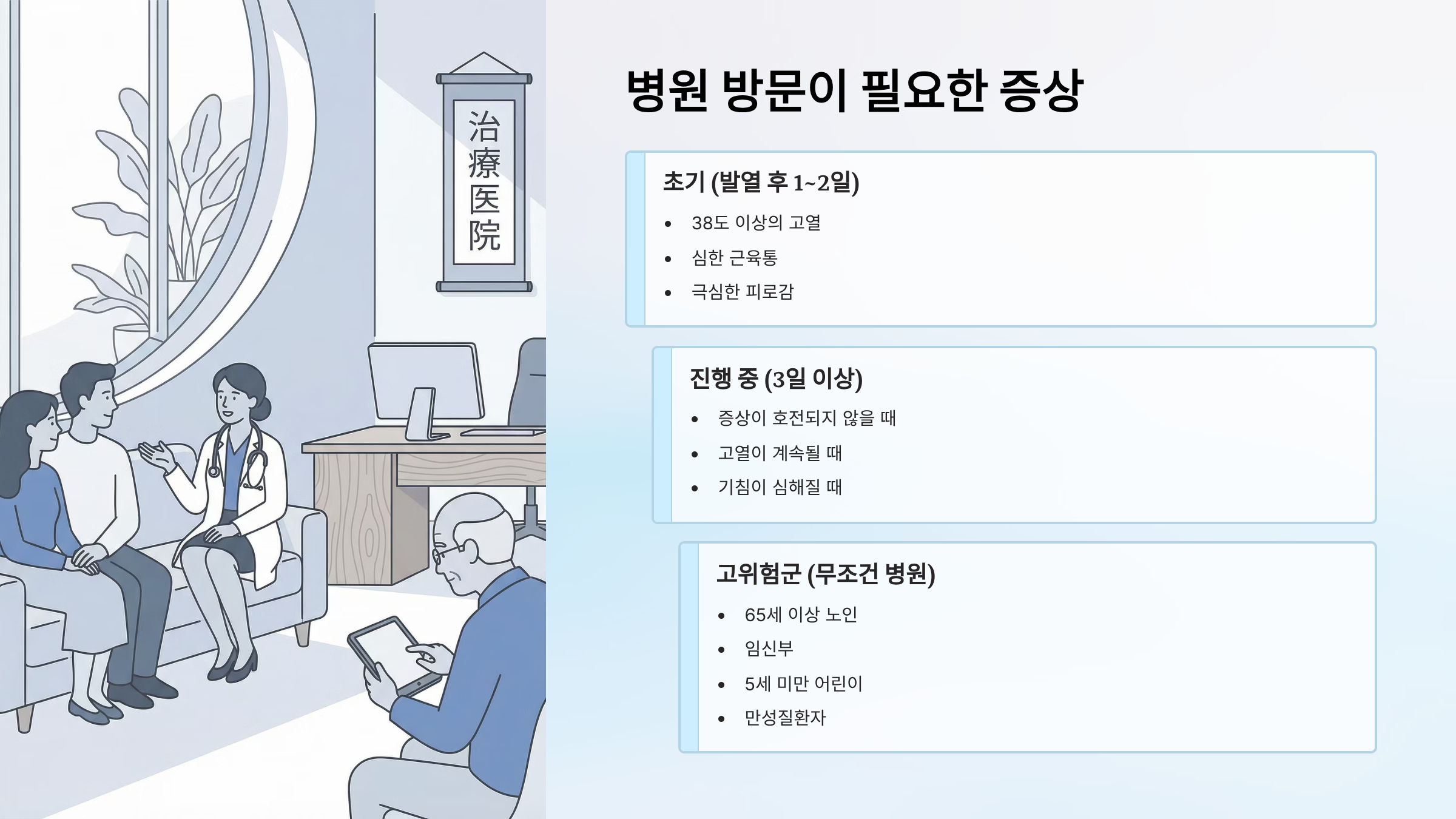 - ☑️ 항바이러스제 처방받기 (48시간 이내 중요)