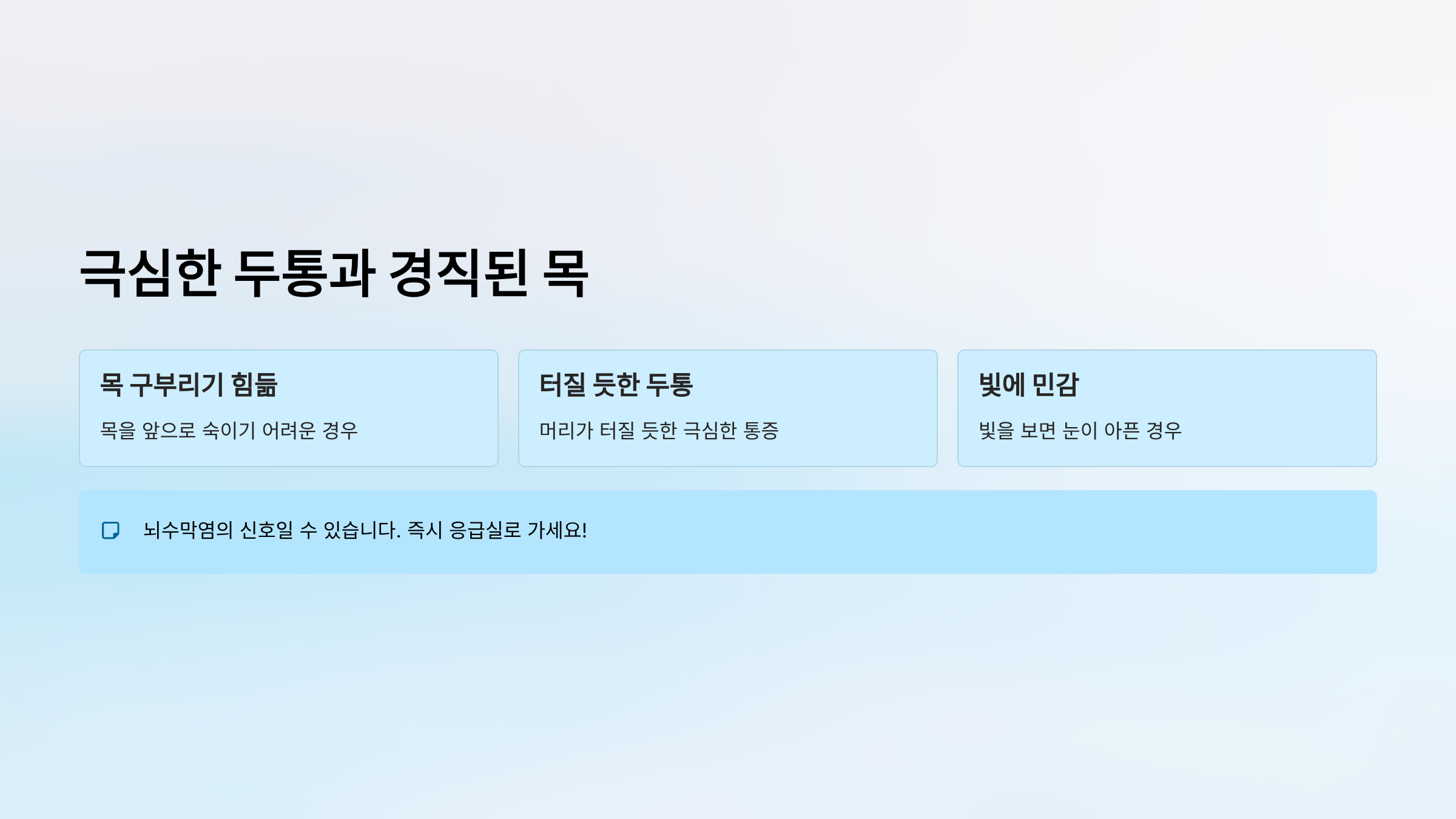| 발병 방식 | 점진적 (서서히) | 급격함 (갑자기) |