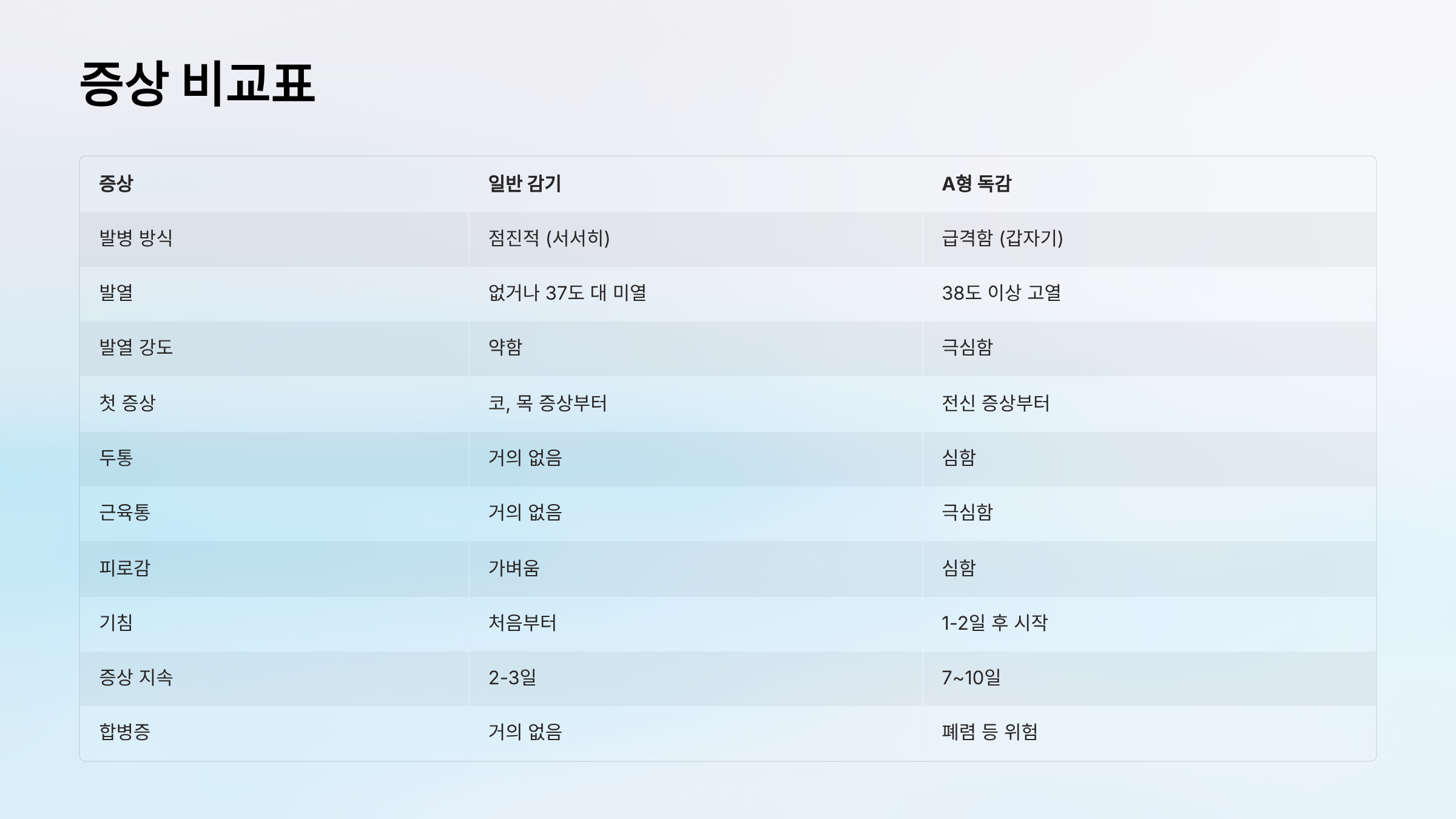 🔄 감기 vs A형 독감 - 명확한 구분법