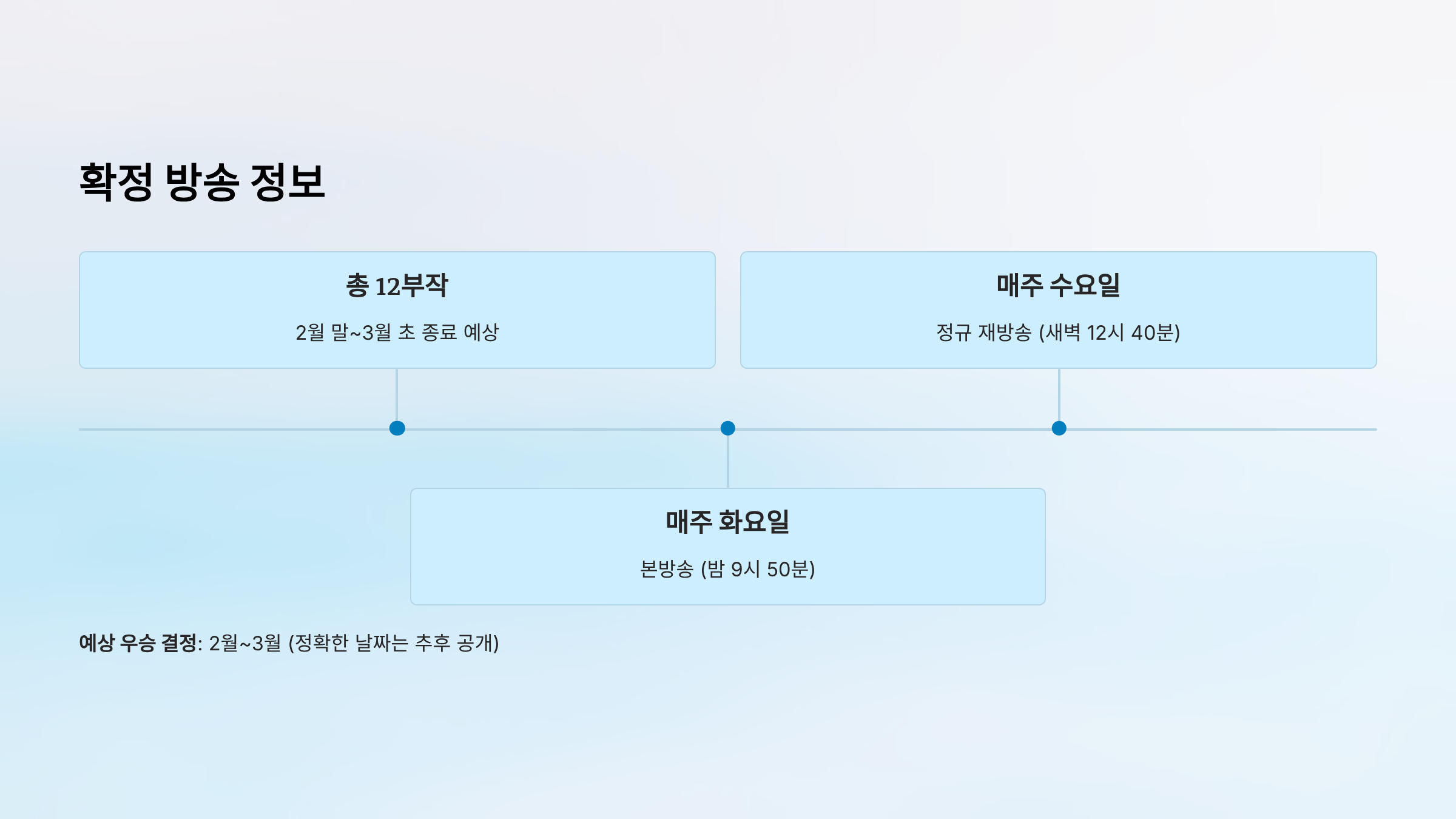 - 총 12부작: 2월 말~3월 초 종료 예상