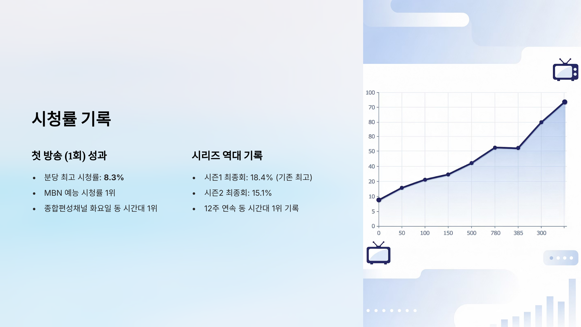 - 12주 연속 지상파, 종합편성채널 동 시간대 1위 기록