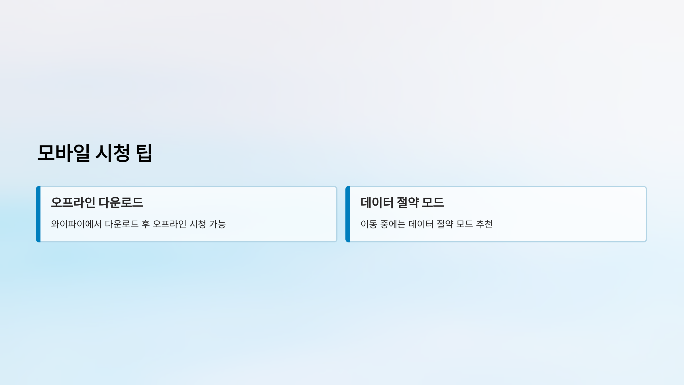 - 와이파이에서 다운로드 후 오프라인 시청 가능