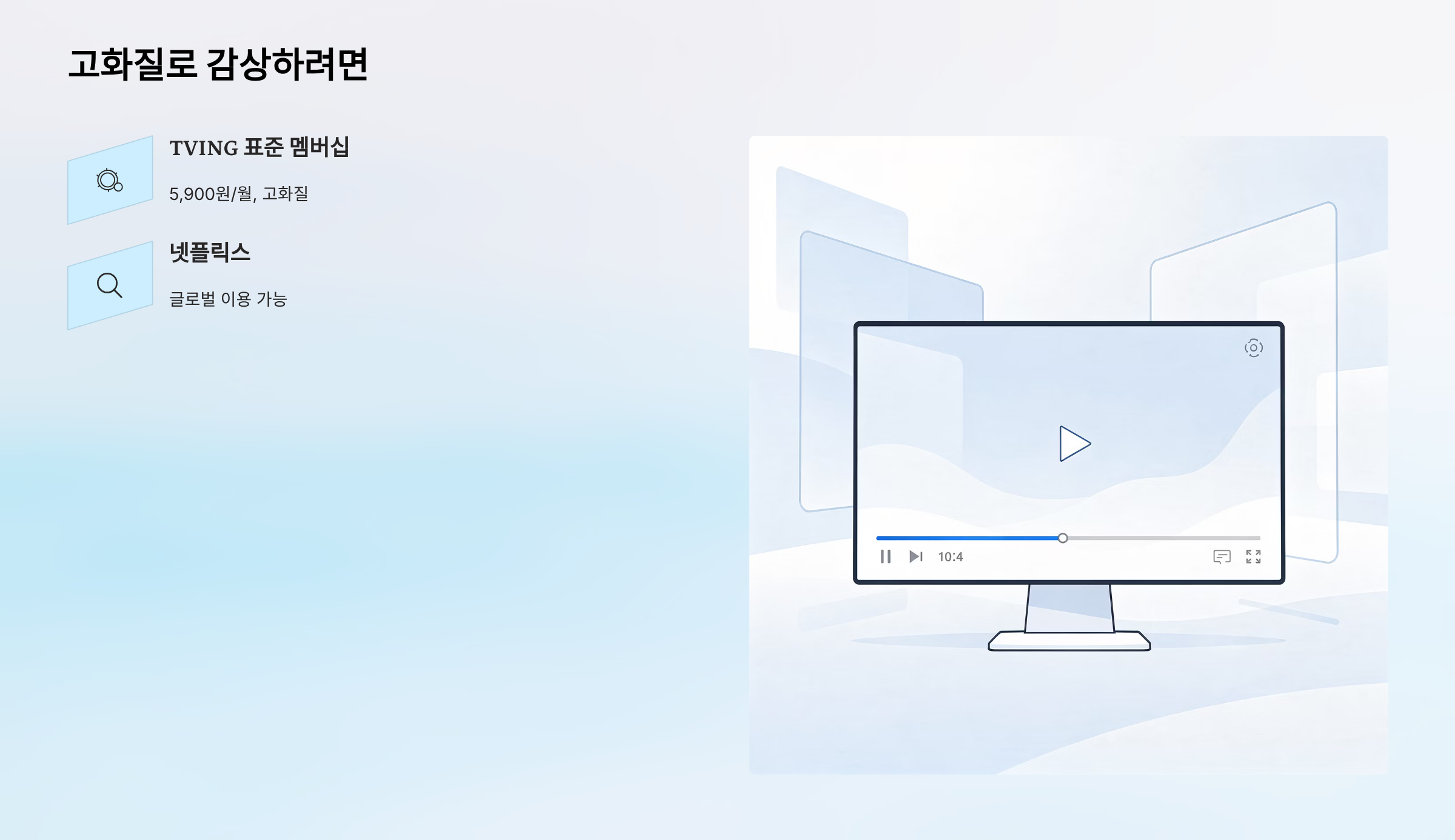 - TVING 표준 멤버십 (5,900원/월, 고화질)