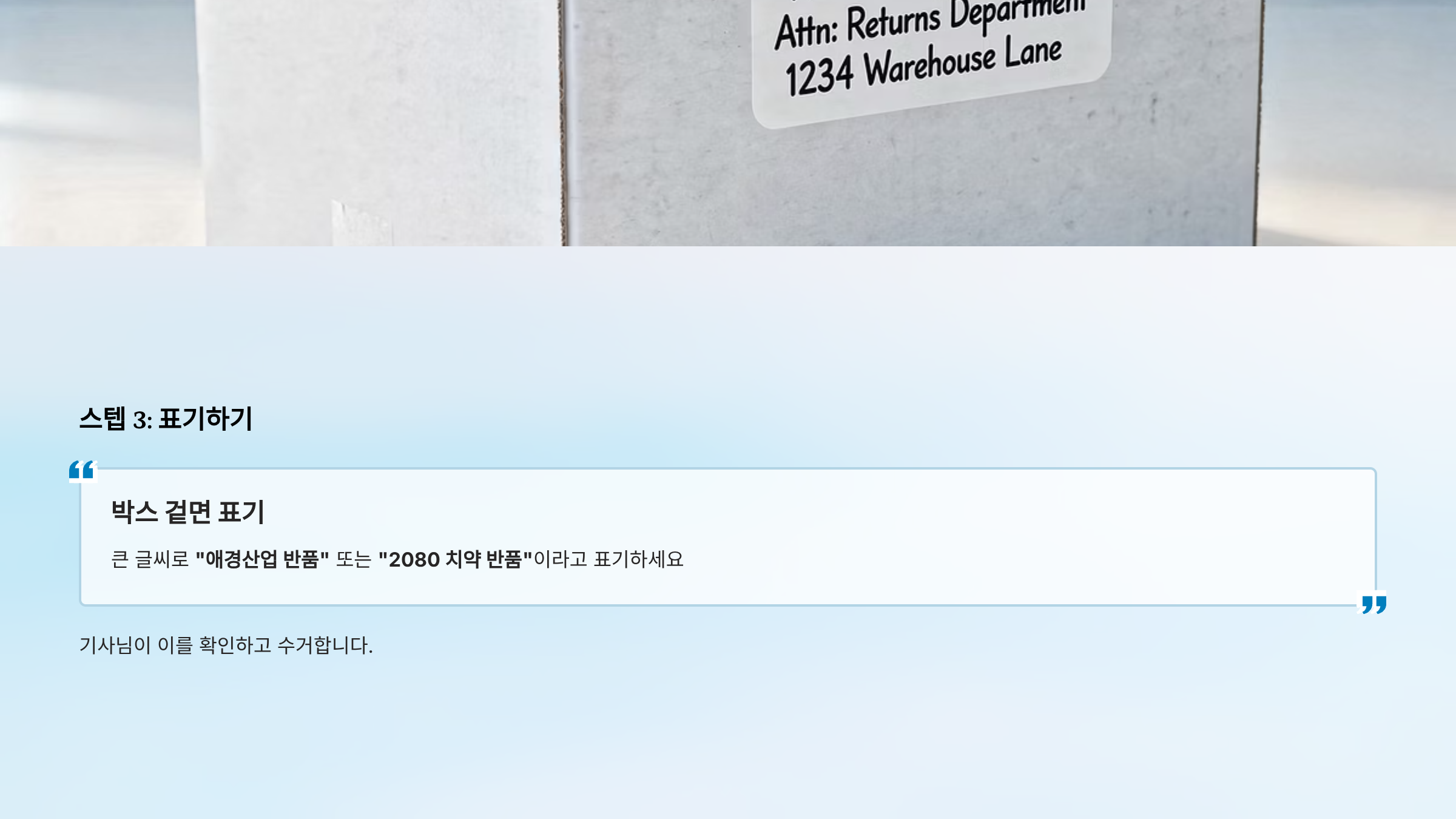 - 박스 겉면에 큰 글씨로 "애경산업 반품" 또는 **"2080 치약 반품"**이라고 표기