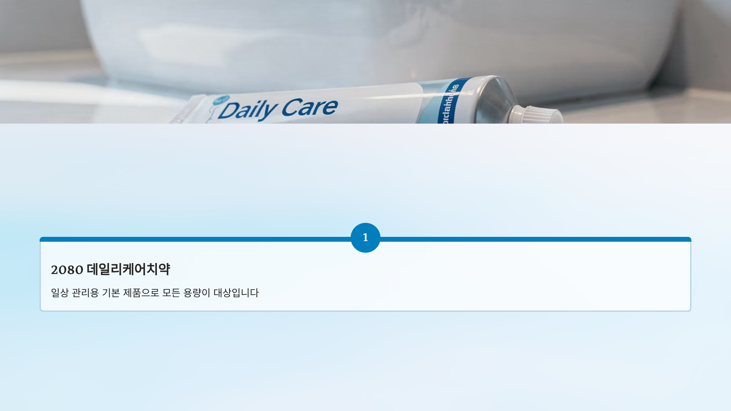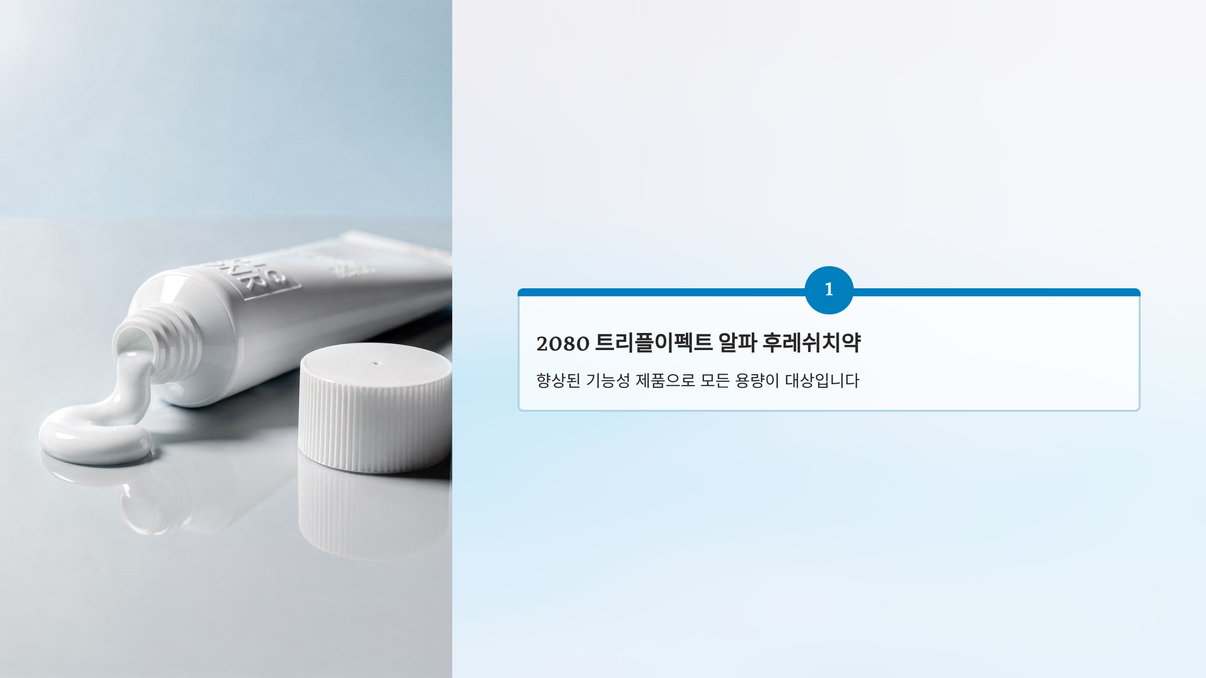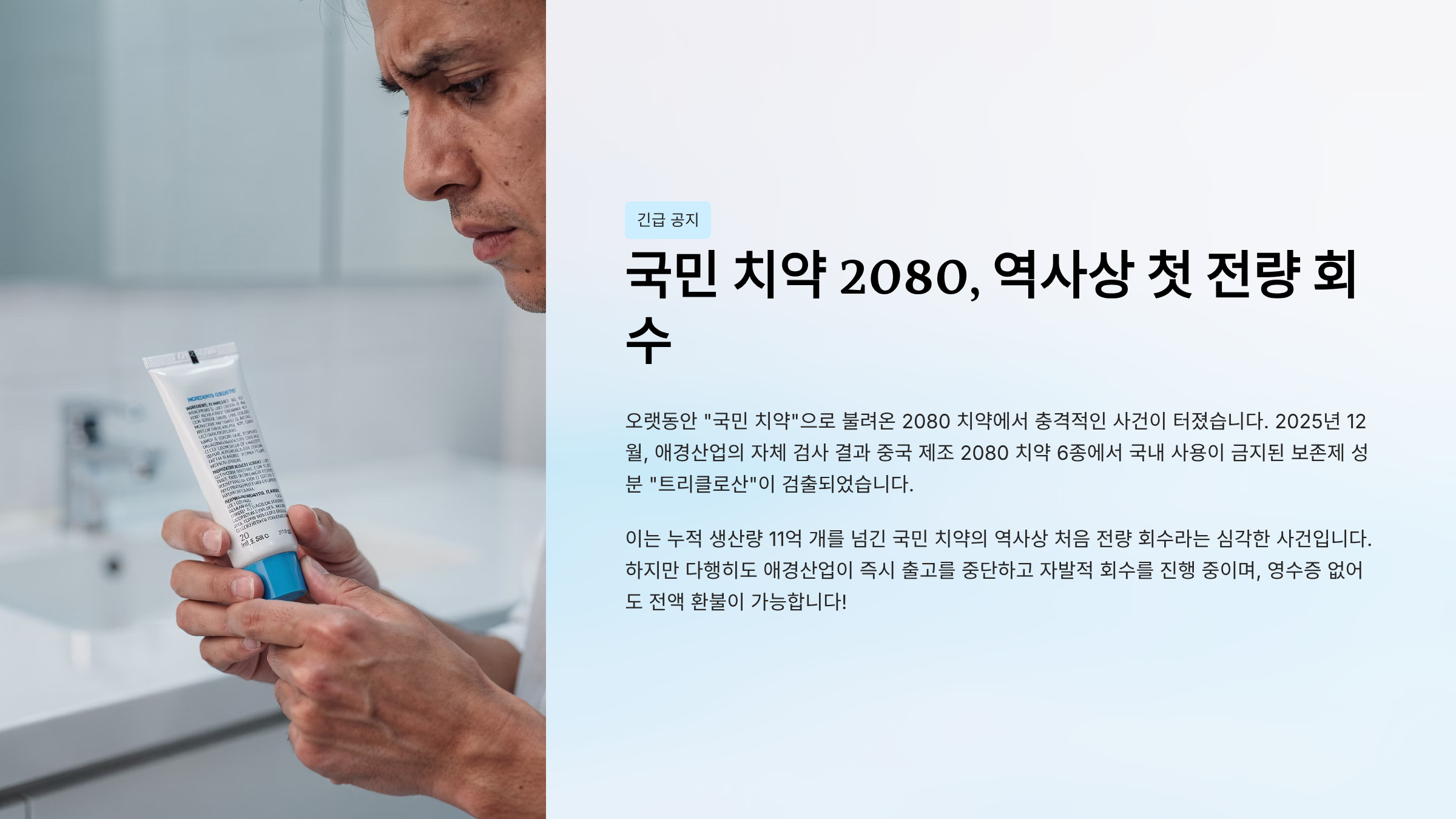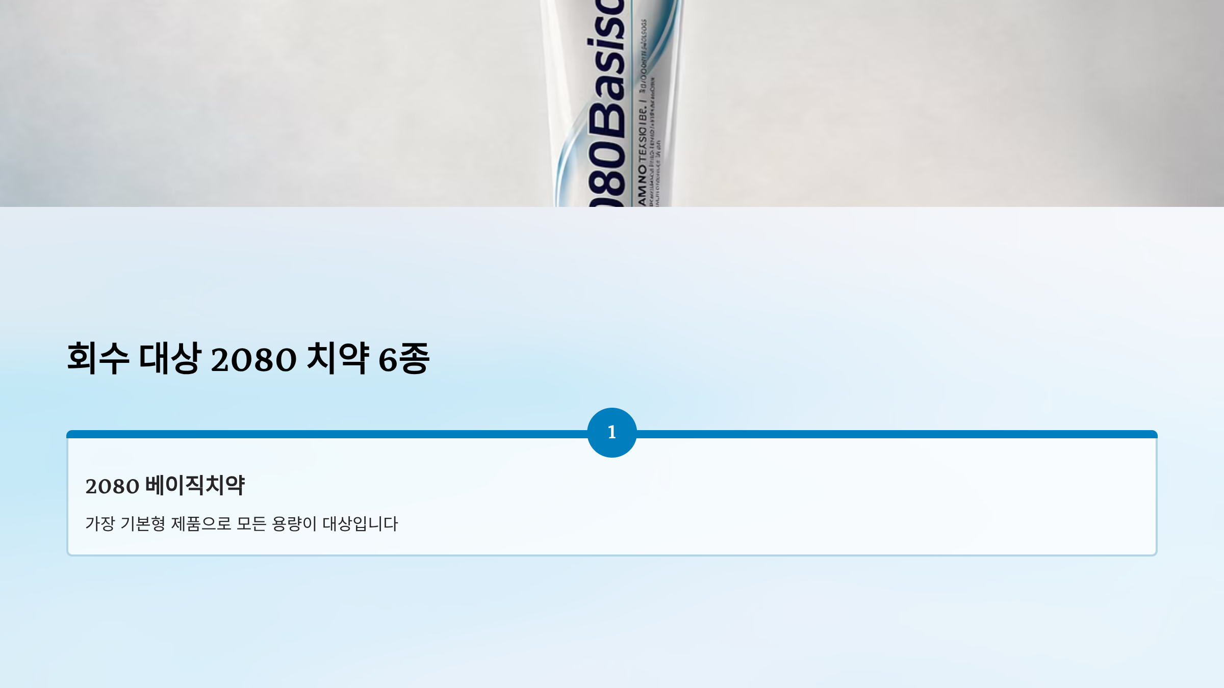 - "2080 치약 회수" 또는 "리콜" 배너 클릭