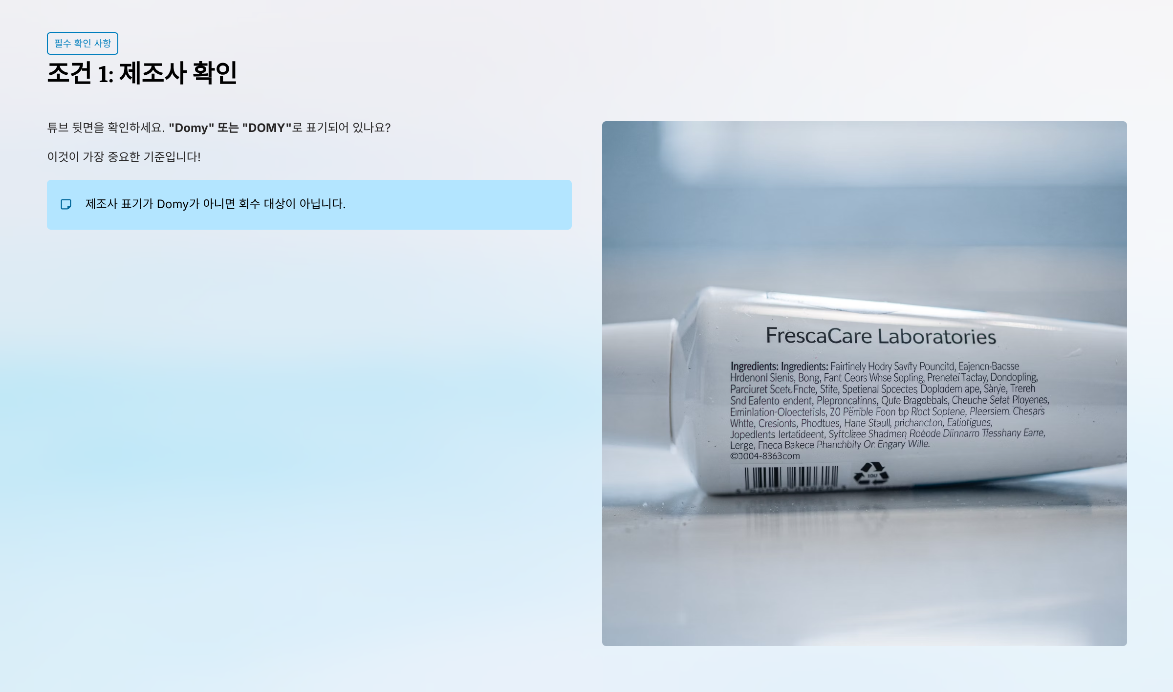 - ⚠️ 회수 대상 조건 충족 (Domy 제조, 중국산)