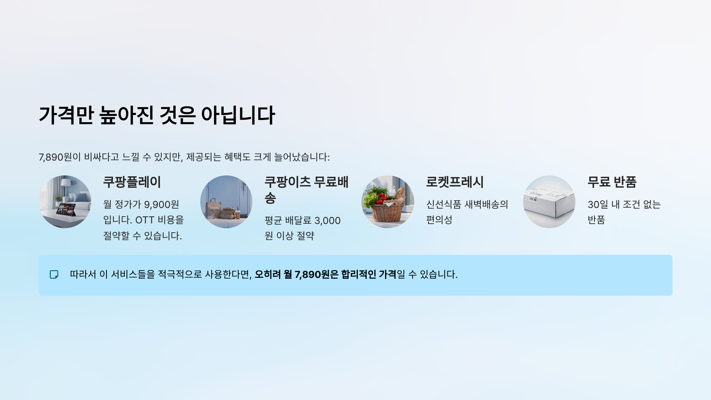 따라서 이 서비스들을 적극적으로 사용한다면, 오히려 월 7,890원은 합리적인 가격일 수 있습니다.