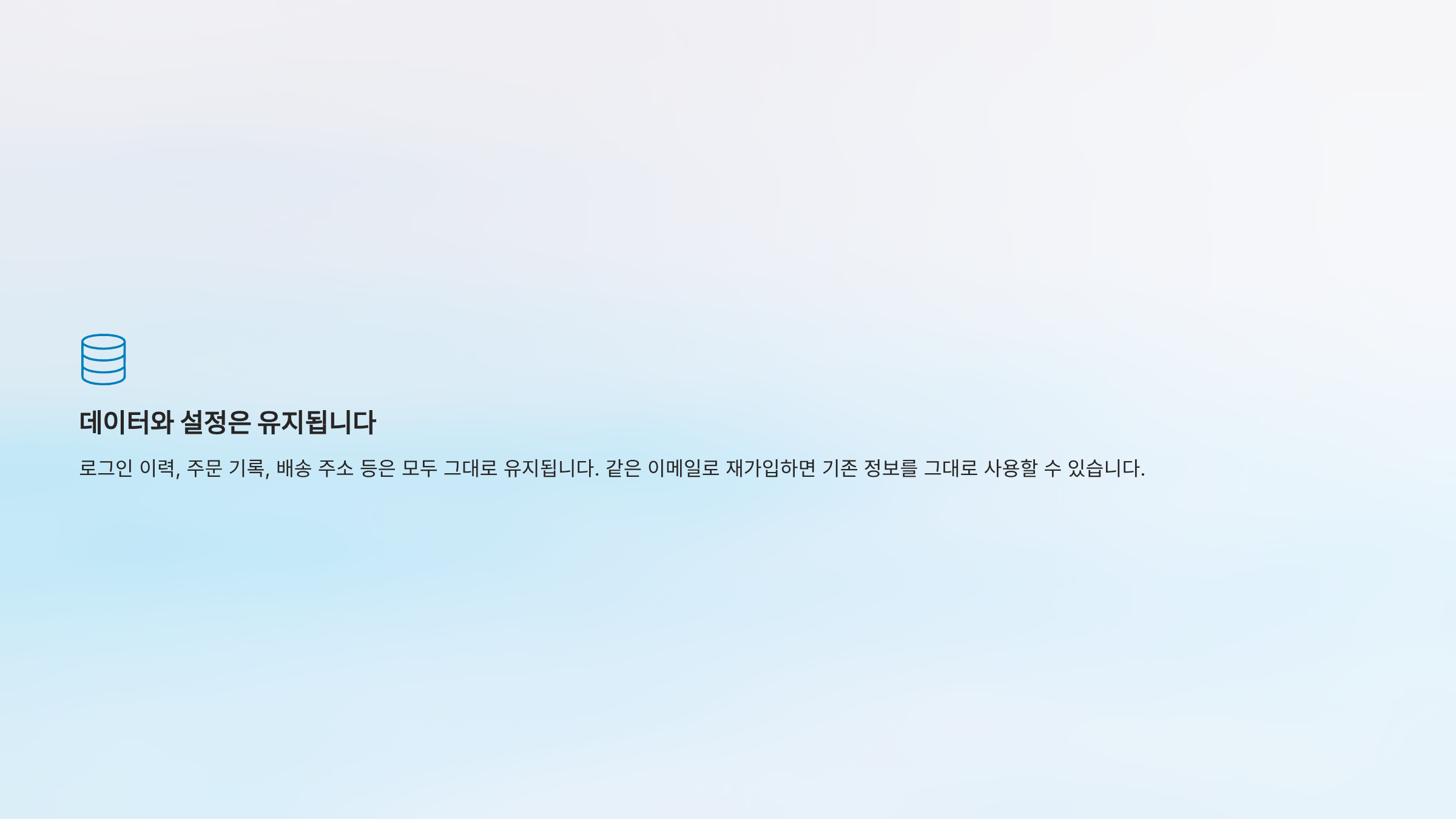 로그인 이력, 주문 기록, 배송 주소 등은 모두 그대로 유지됩니다. 같은 이메일로 재가입하면 기존 정보를 그대로 사용할 수 있습니다.