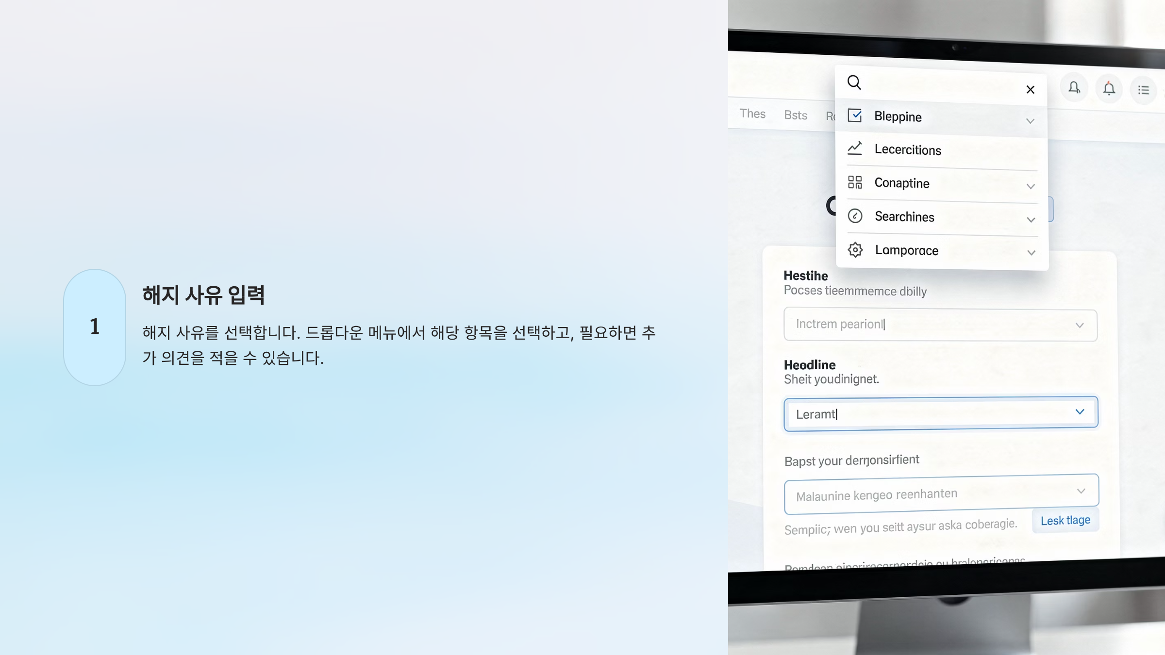 해지 사유를 선택합니다. 드롭다운 메뉴에서 해당 항목을 선택하고, 필요하면 추가 의견을 적을 수 있습니다.