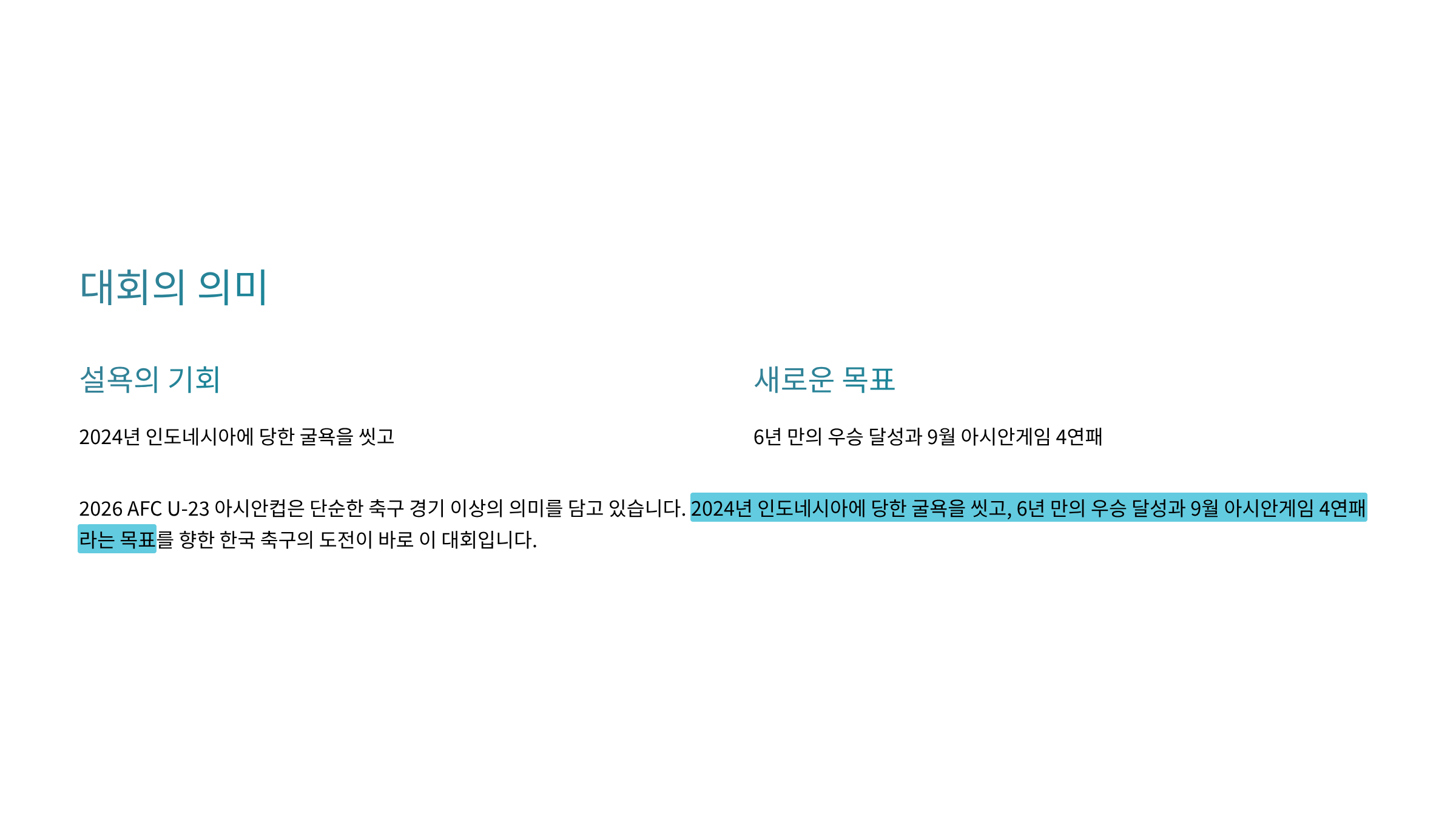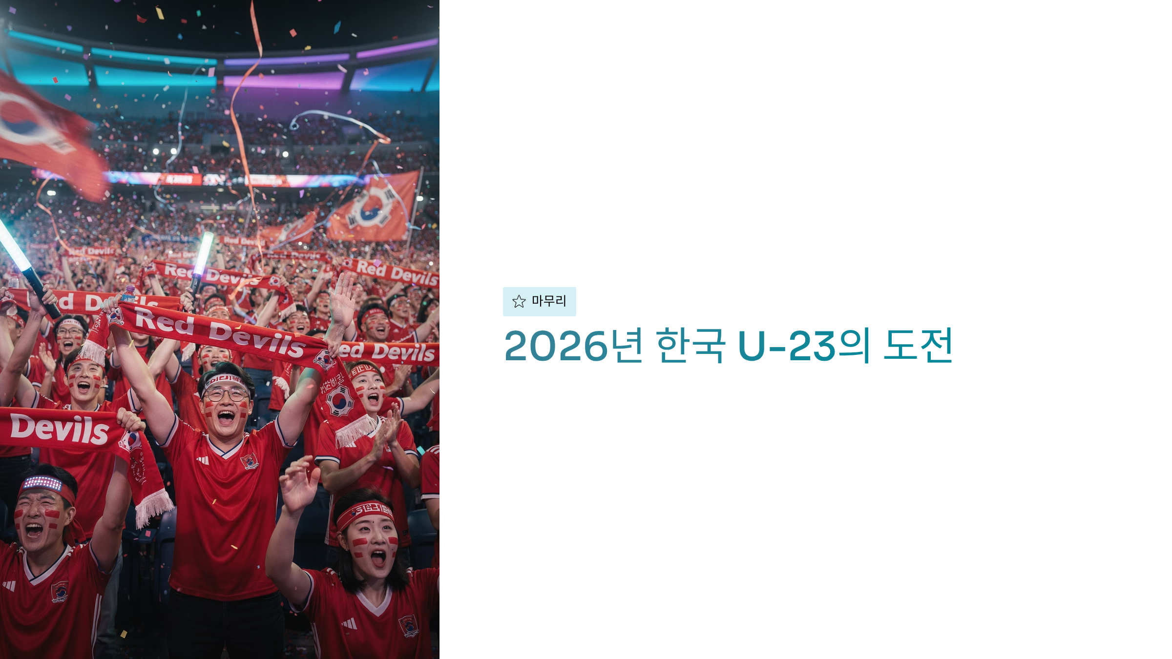 2026 AFC U-23 아시안컵은 단순한 축구 경기 이상의 의미를 담고 있습니다. 2024년 인도네시아에 당한 굴욕을 씻고, 6년 만의 우승 달성과 9월 아시안게임 4연패라는 목표를 향한 한국 축구의 도전이 바로 이 대회입니다.