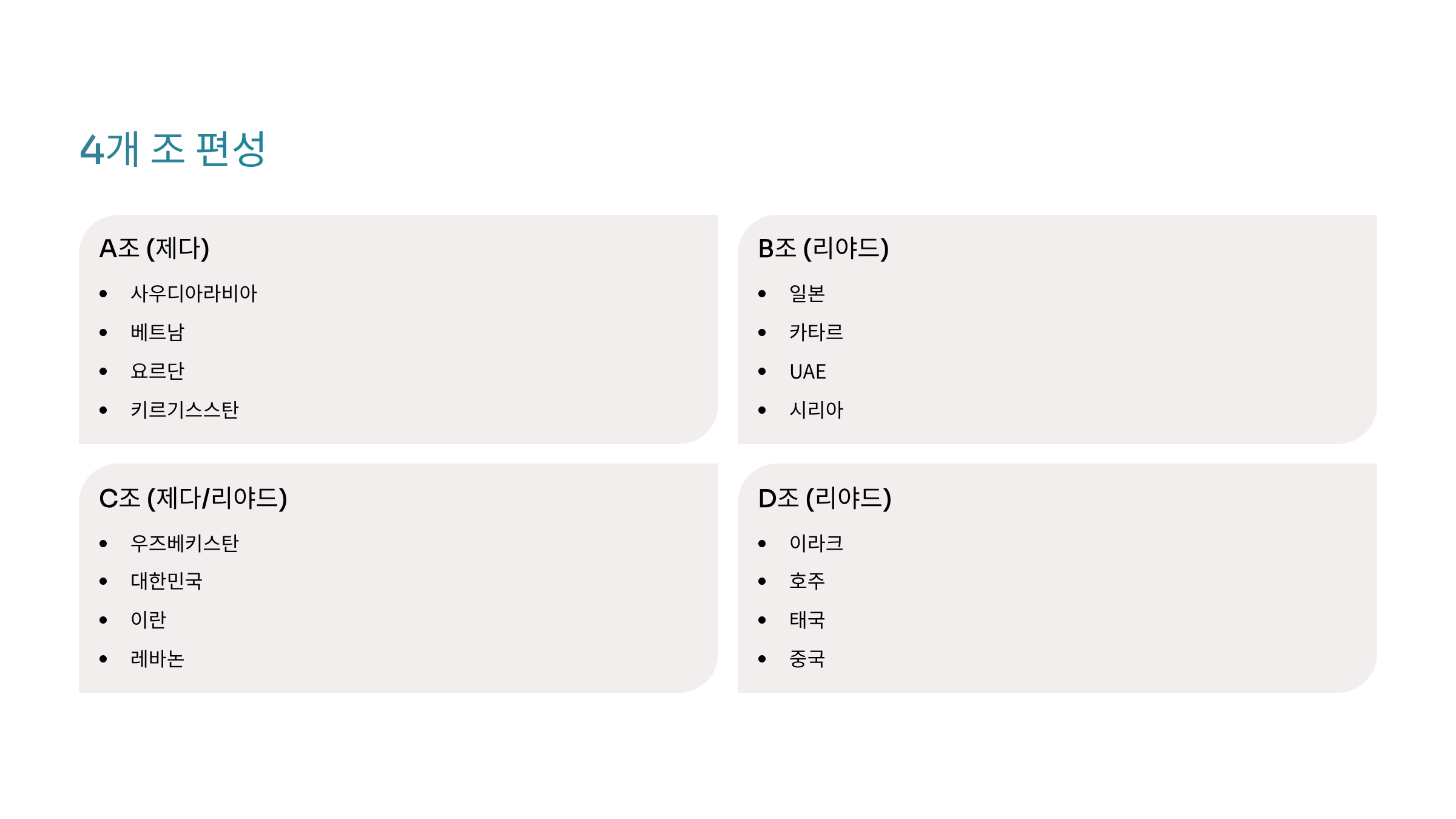 팀: 우즈베키스탄, 대한민국, 이란, 레바논
